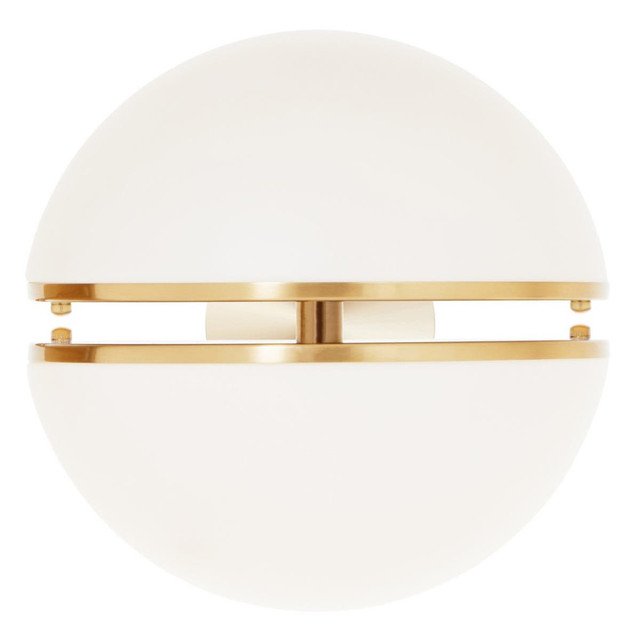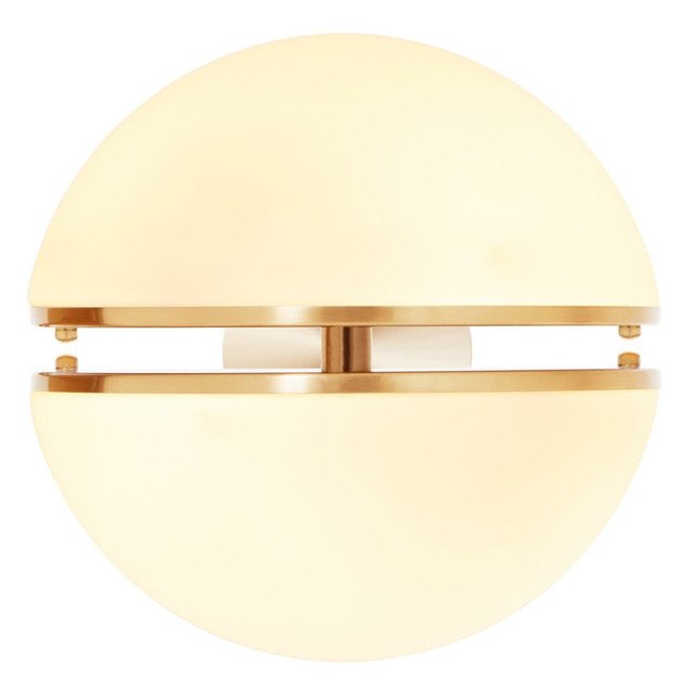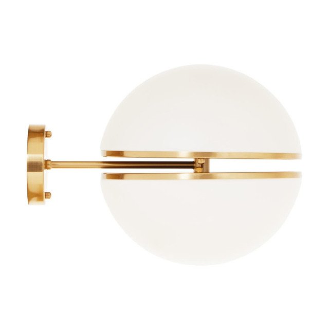 Tabira Brushed Brass Ball Wall Light: The Tabira luxe wall light has two globe halves which are contrasted with brushed brass metal.