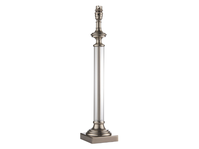 A classically-inspired clear glass column lamp, with a timeless feel that compliments most elegant and traditional spaces. Finished in Antique chrome plating with a switched metal lamp holder. Perfect when paired with one of our beautiful pleated fabric shades.