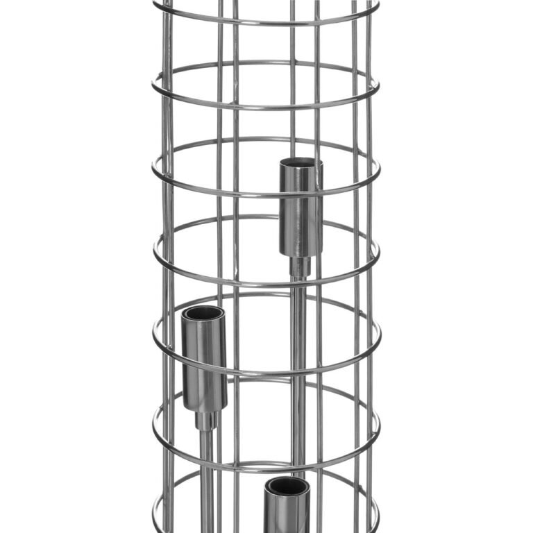 The large Belg Large Table Lamp features a carved natural wood base with prominent graining. A cylindrical, dome-topped cage is attached to the robust wooden base via screws. Enclosed in the silver finished cage is a single light bulb holder, left exposed to enhance the factory floor aesthetic of the lamp.