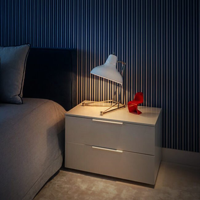 Diana Table is a vintage table lamp inspired by some of the greatest design classics of the mid-century era. It is a handmade lamp built with materials such as brass and aluminum. Brass was used on the body, whilst aluminum was chosen for the shade. The aluminum shade is lacquered a glossy red on the outside and matte white on the inside, while for the body a nickel-plated finish was chosen. However, both these colors and finishes can be customized according to your needs. This small lamp is easily the perfect reading light, having a movable and adjustable shade, that casts light to where it is needed. It best fits more minimalist or industrial environments. The perfect study table lamp.