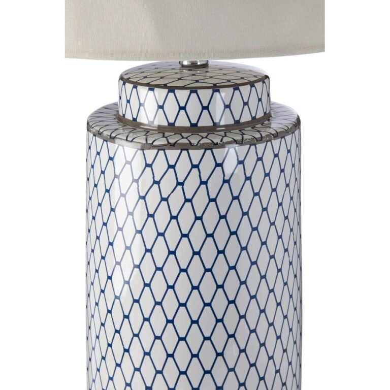 This Era Table Lamp / Cream Shade has a reflective ceramic stand that accentuates a black and white geometric pattern completed with a tapered linen shade in cream.
