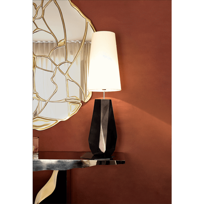 Feel is a table lamp, but actually, it can also be a modern bedside table lamp. It can be elegantly used in your living room as sophisticatedly in your bedroom. Handcrafted by Boca do Lobo, Feel is an exclusive lamp covered with silver leaf, the shade is silk and the base is polished stainless steel. Feel lamps allude to mineral forms and natural materials to produce sculptural pieces. Highly decorative, Feels lamps base is available in emerald, lapis, amethyst or citrine.