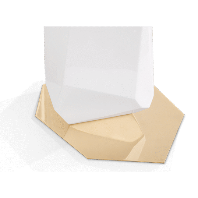 Finished in silver leaf finished with a high gloss varnish. It is also available in emerald, lapis, amethyst or citrine.