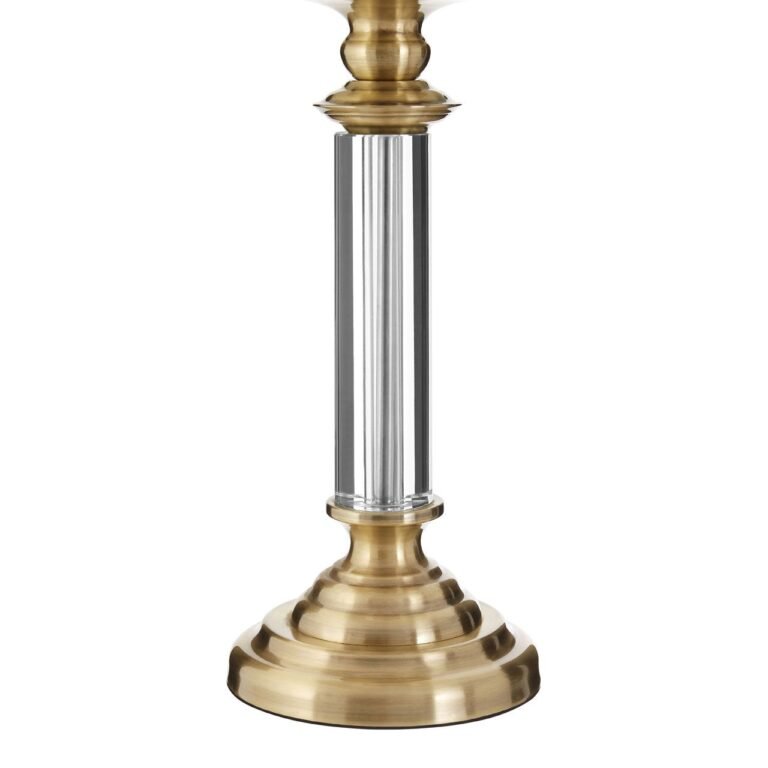 The Gradi Northern table lamp can be used to grace boutique hotel-style interior design settings. Its base is made from gold coloured metal, with tiered detail that complements the rounded knop on the upper stem, and the crowning finial that emerges above the cream fabric shade. A column of clear crystal glass is suspended between.
