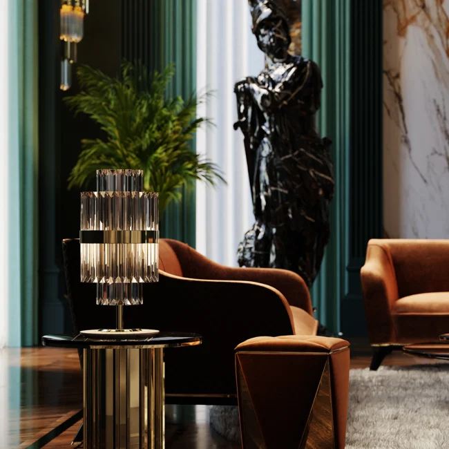 The Liberty Table Lamp is born from a collection that has never ceased to inspire us. Likewise, LUXXU wants you to be inspired by this luxury table lamp, designed to give a subtle yet inescapable richness to any room. This highly detailed combination of brass, crystal glass, and marble creates a sublime piece of design.MATERIALS