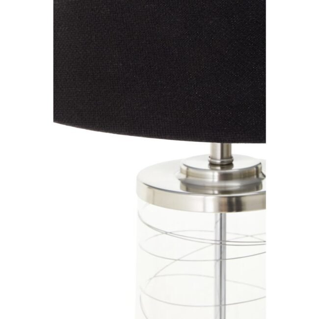 Orimk Glass Cylinder Table Lamp: The Orimk table lamp features a cylindrical glass and chrome base complemented by a black linen shade.