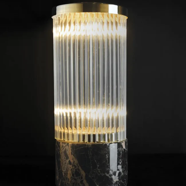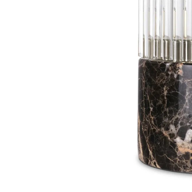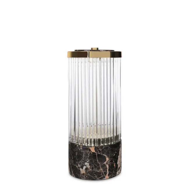 A representation of the architectural lines of lighthouses in the shape of a luxury table lamp. The Pharo II Table Lamp has a marble base that supports the delicate crystals and is topped with a brass plate, making it the perfect finishing touch for any desk or bedside table.MATERIALS