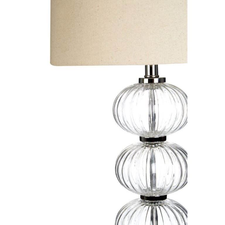 Ragyl Table Lamp With Eu Plug: Elegantly designed, the Ragyl table lamp, with EU plug, features 3 beautiful shaped glass orbs which accentuates a glamorous look in any décor. A round metal chrome base keeps a stable lamp, while the effortlessly shaped glass inspires an exquisite style, creating a fantastic feature in your living space. Complementing the base, a natural linen shade allows a soft, warm glow into your space. An in-line switch allows you to easily turn the light on/off without having to reach for the plug every time. Sitting beautifully in both traditional and modern settings, the Ragyl table lamp will enlighten your decor.