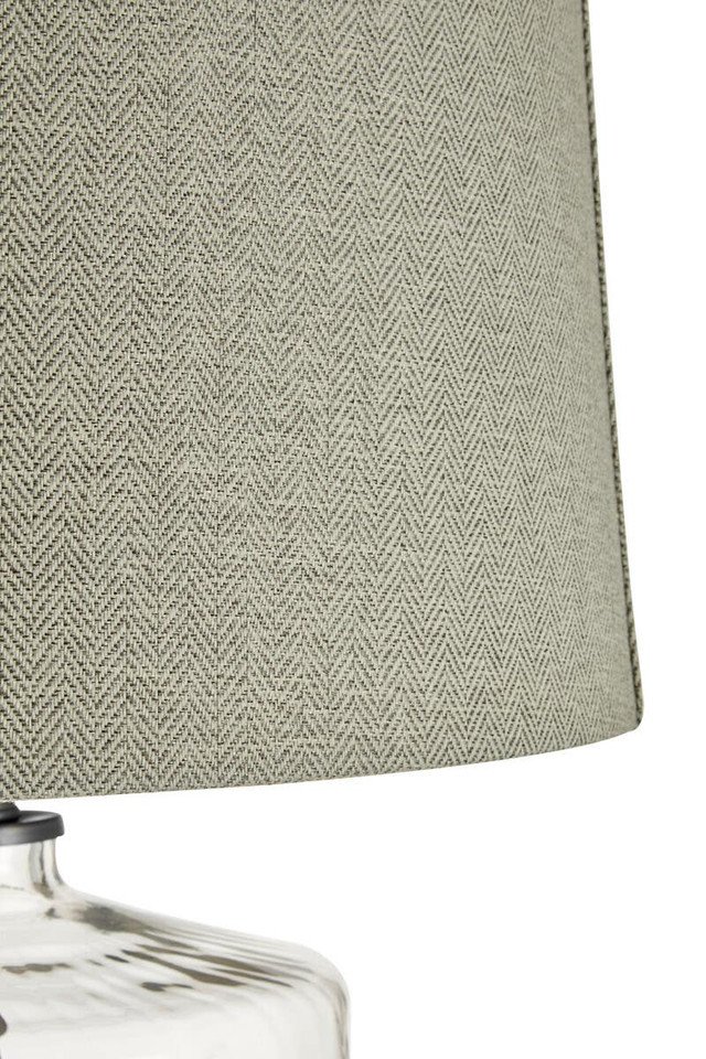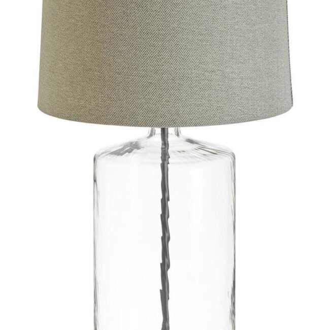 Tonit Table Lamp With Grey And Black Shade: The Tonit grey and black linen shade table lamp has a striking contemporary design with an elegant glass cylindrical body and metal base.