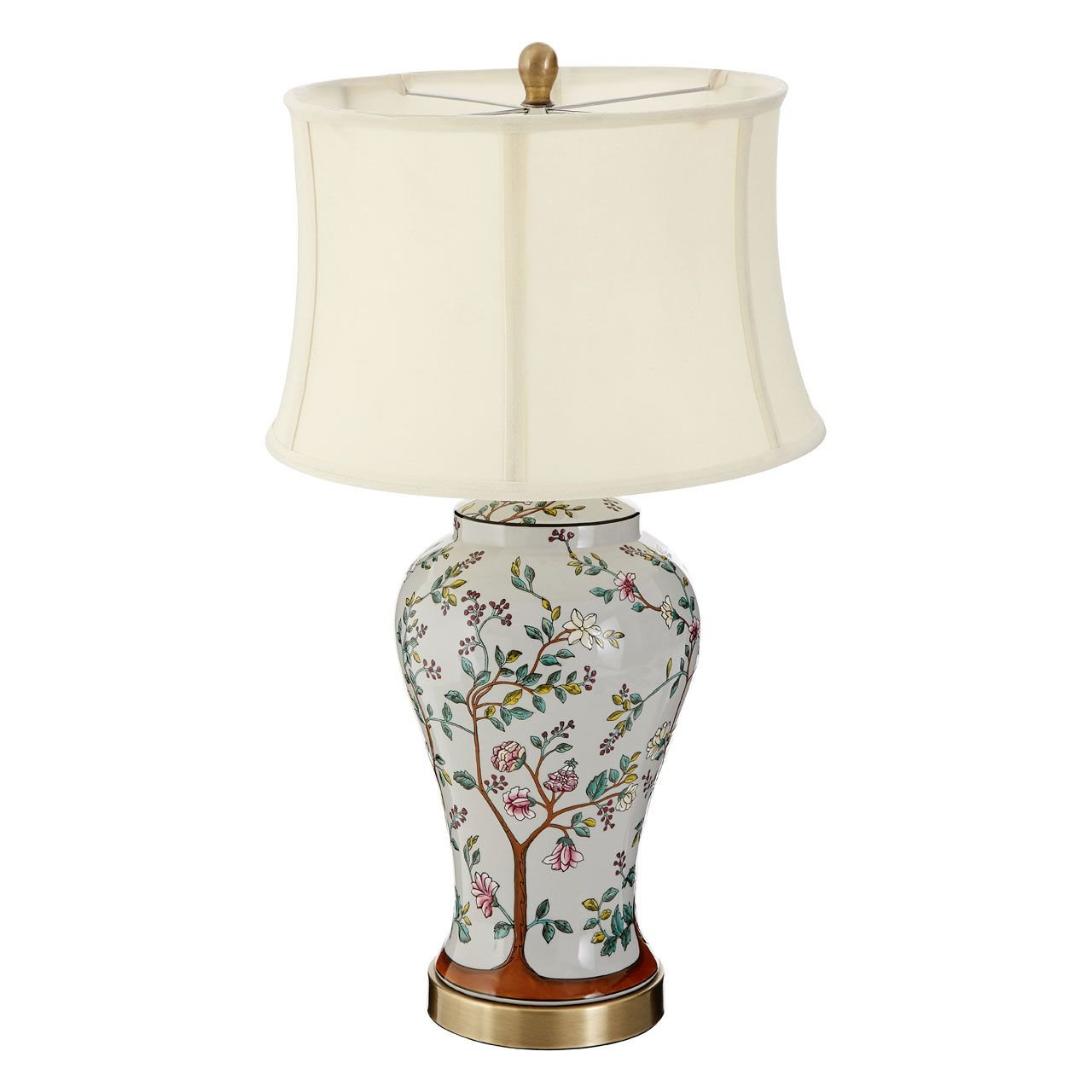 Vent Table Lamp: Its shade is made from soft cream fabric, with a harp fitment at the top that supports the copper-coloured metal finial. The finial coordinates with the layer of metal that forms the lamp’s plinth. The exquisitely decorated base is made from ceramic, with a white finish that provides a clean palette for the ornate foliage and flowers that embellish its smooth surface.