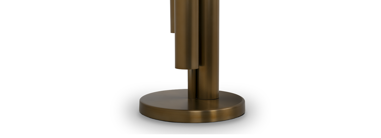 Winnow Table Lamp: This table lamp takes its name from the winnowing method, an ancient technique of separating grain from the straw. Its body is composed of small lacquer wood tubes, representing the straw, and the abat jour shade emerges from the base with a light tapioca fabric, separating distinctively from its rigid body. By mixing a more classic approach to the shade with a contemporary design to its body, this table lamp will brighten every surface and interior.
