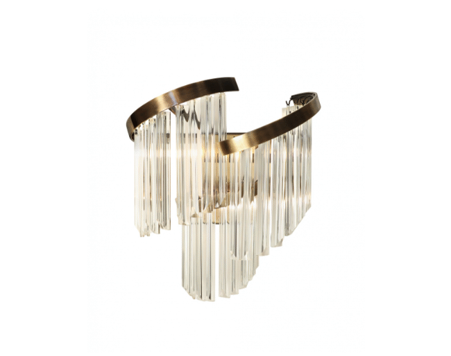 Twist Wall Light: Twist wall lights materializes the concept of twist in its design. The combination between the glass and the gold plated brass structure gives this one of a kind handmade lighting piece a sense of refinement that is unusually seen. This elegant design reminds the famous Victoria waterfalls in Zimbabwe as it gives the illusion of falling water.