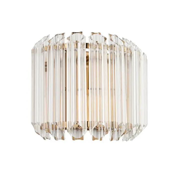 Alenti Wall Light Brushed Aged Brass: Add a touch of refined luxury to your interior with this stunning clear glass wall light. Designed with faceted vertical glass rods set in a sleek metal frame, it diffuses light beautifully to create a warm, ambient glow. The geometric silhouette brings a sophisticated edge, making it an ideal choice for elevating hallways, living rooms, or bedrooms. Both glamorous and timeless, this wall light serves as a decorative statement piece while delivering elegant, atmospheric illumination.
