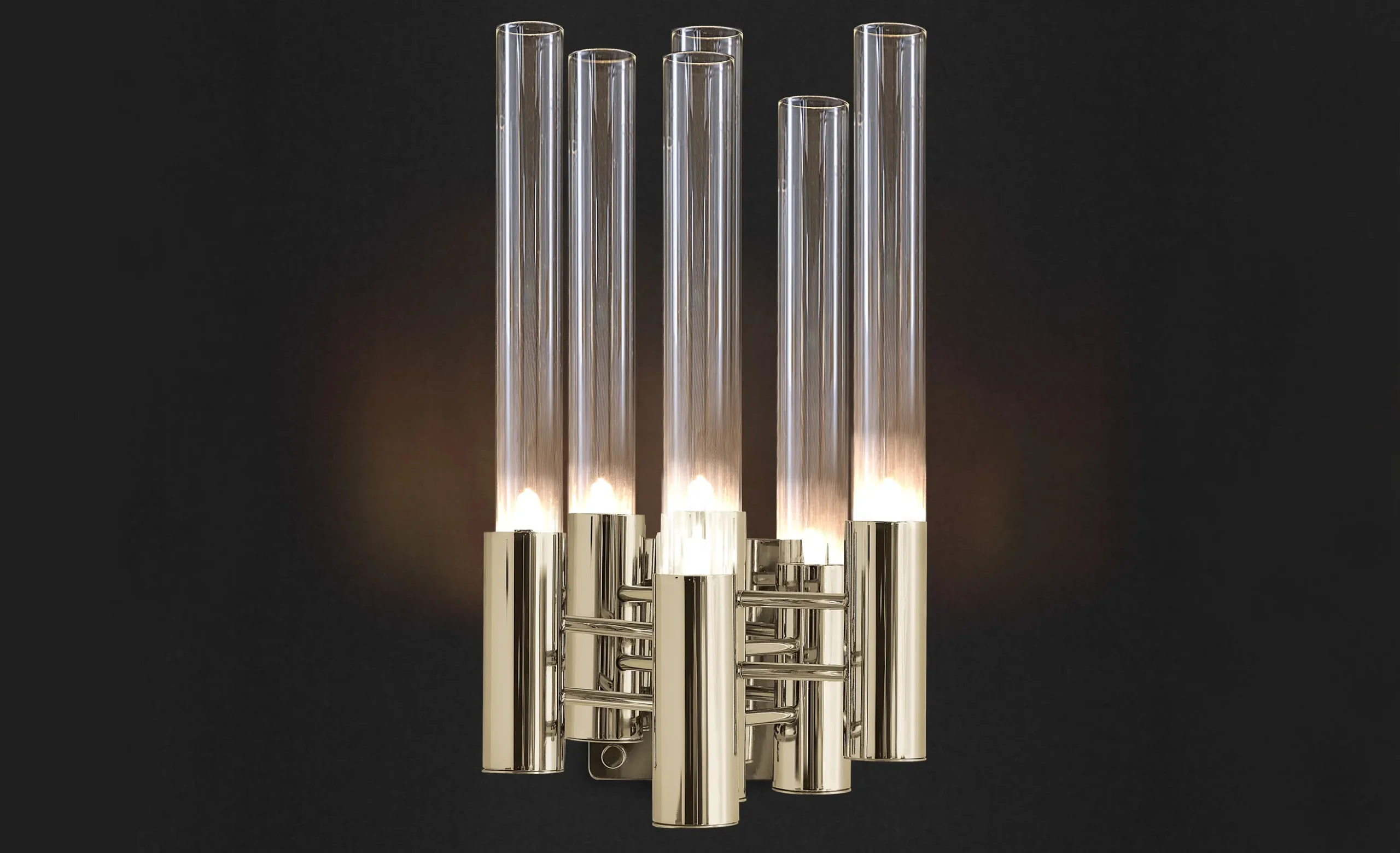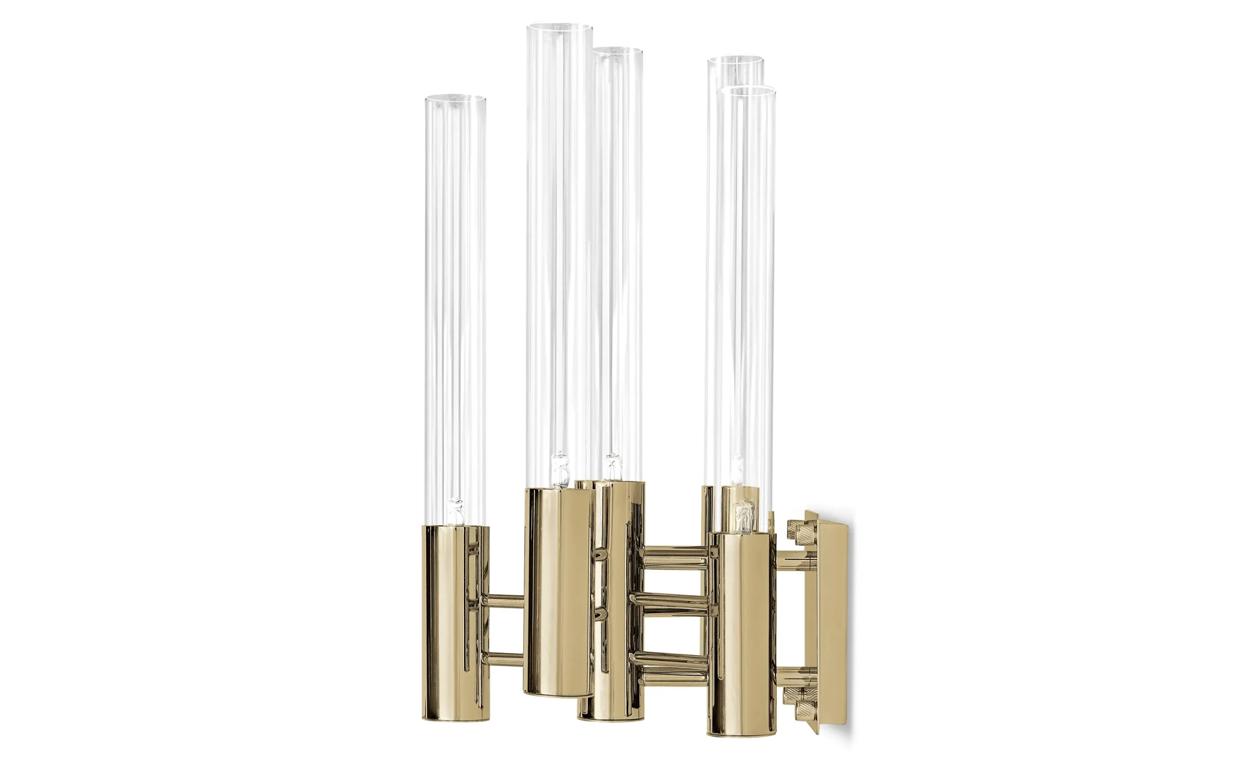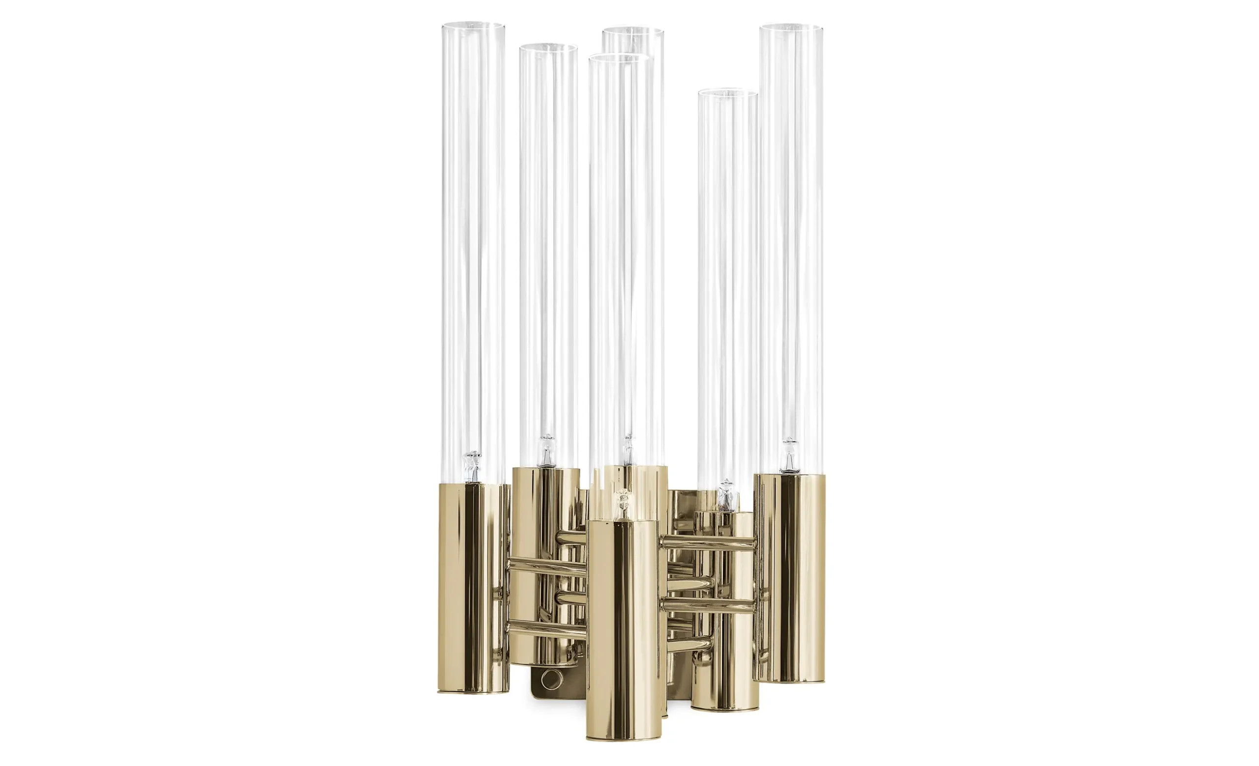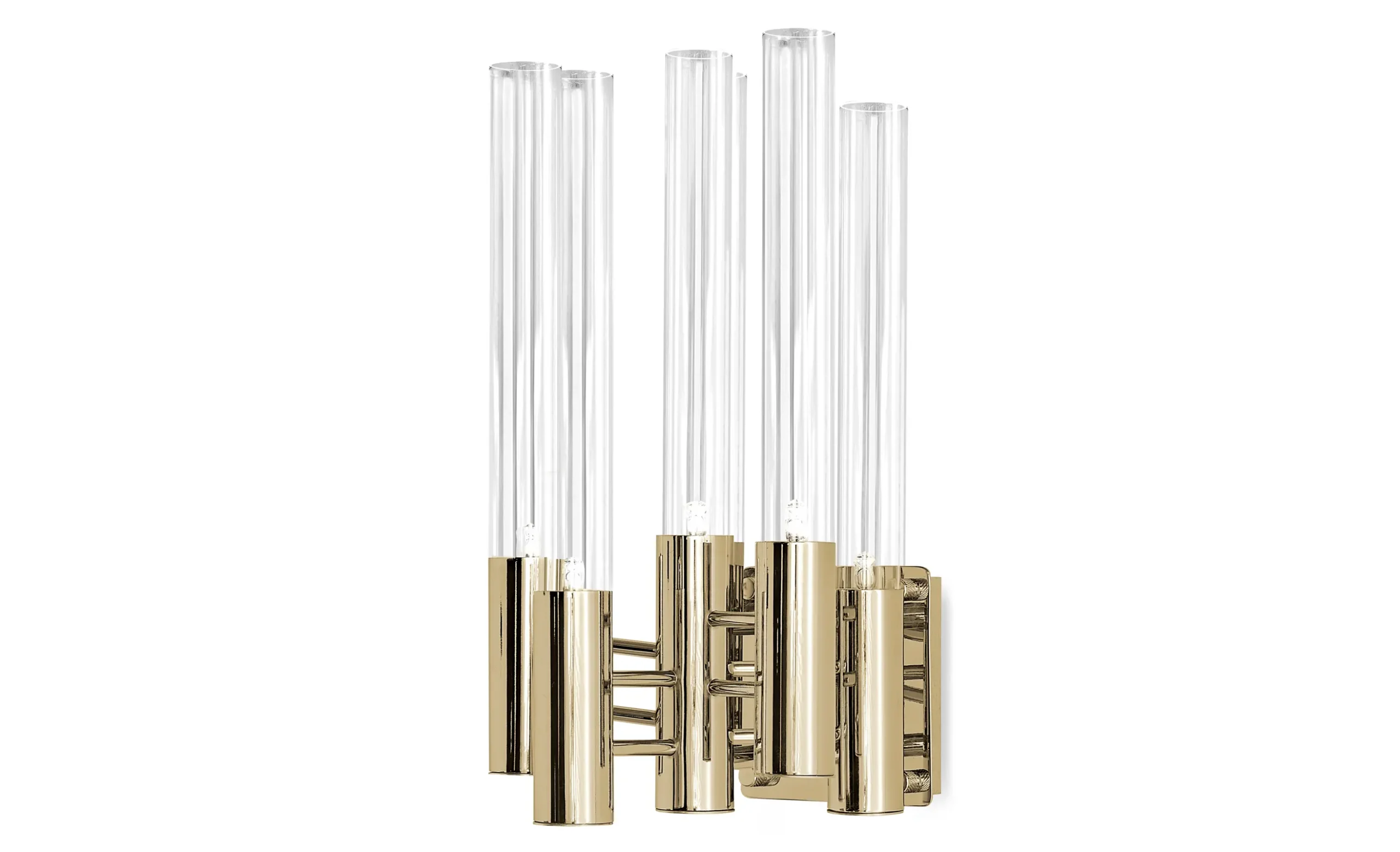 The Burj Wall Lamp brings a magical sensation to every space with high-end materials such as gold-plated brass and crystal glass. It transmits elegance and sophistication to any interior decor. The delicate, handmade crystal glass tubes make it a modern lighting addition to any interior decor.