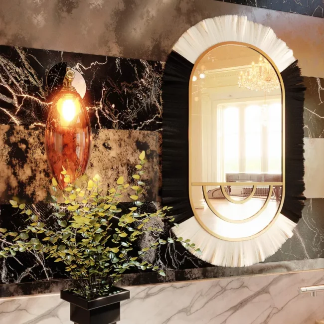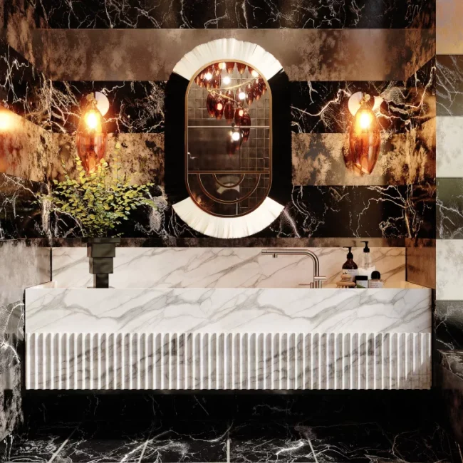 Details in Polished Carrara Marble and Nero Marquina.
