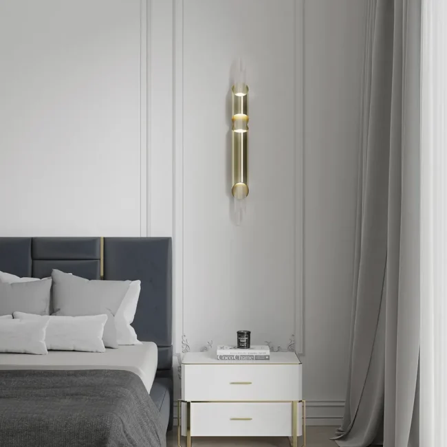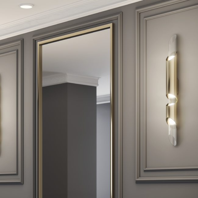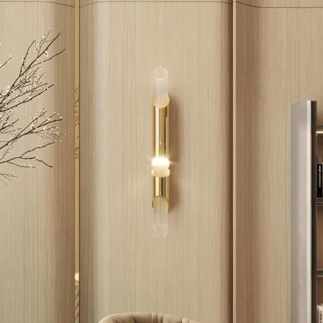 Made with a simple cylinder of crystal glass and gold-plated brass, the Draycott I Wall Lamp enhances the beauty of any interior decor it adorns. With a simple and elegant design, this wall light is ideal for illuminating art pieces such as paintings or sculptures.MATERIALS
