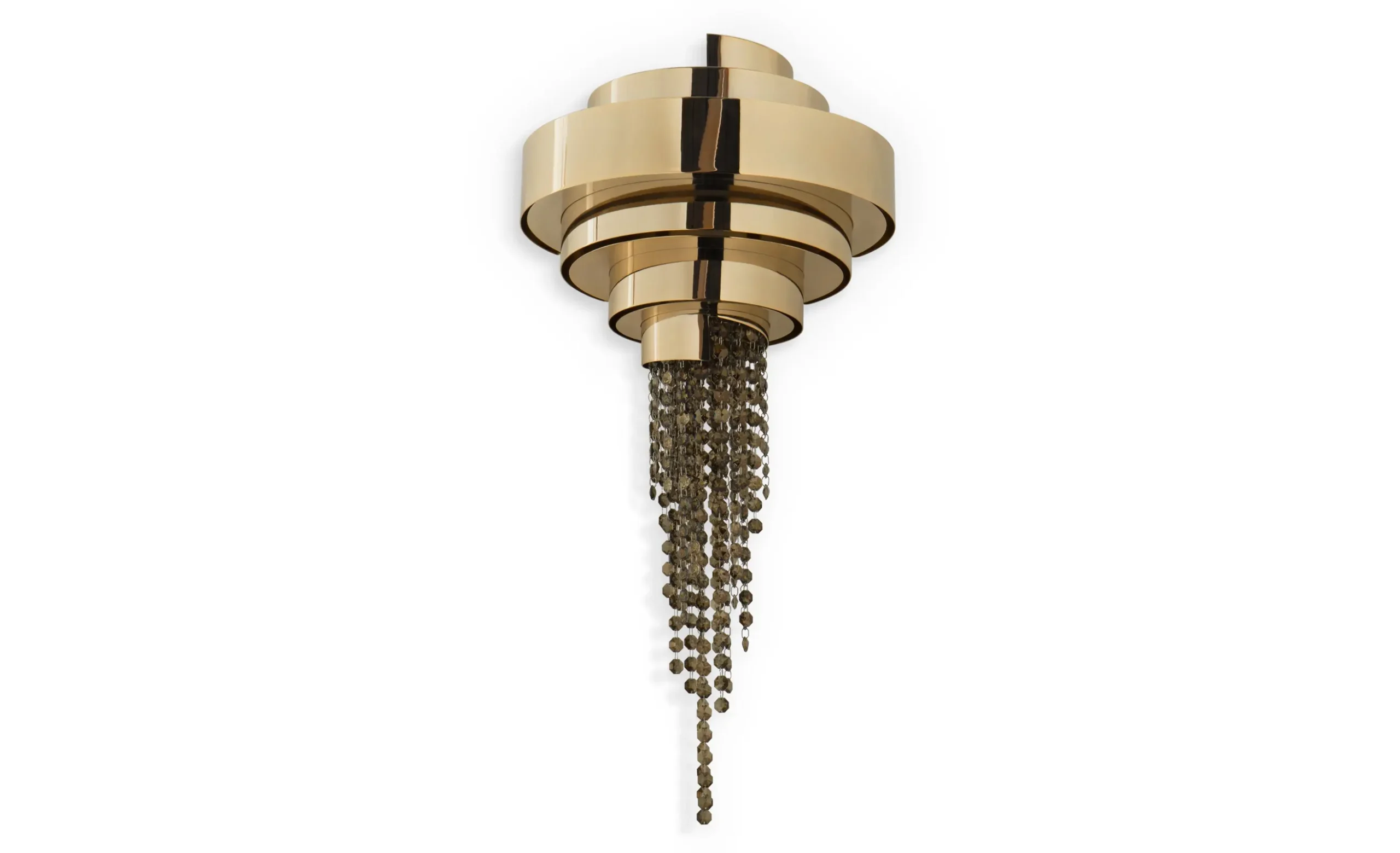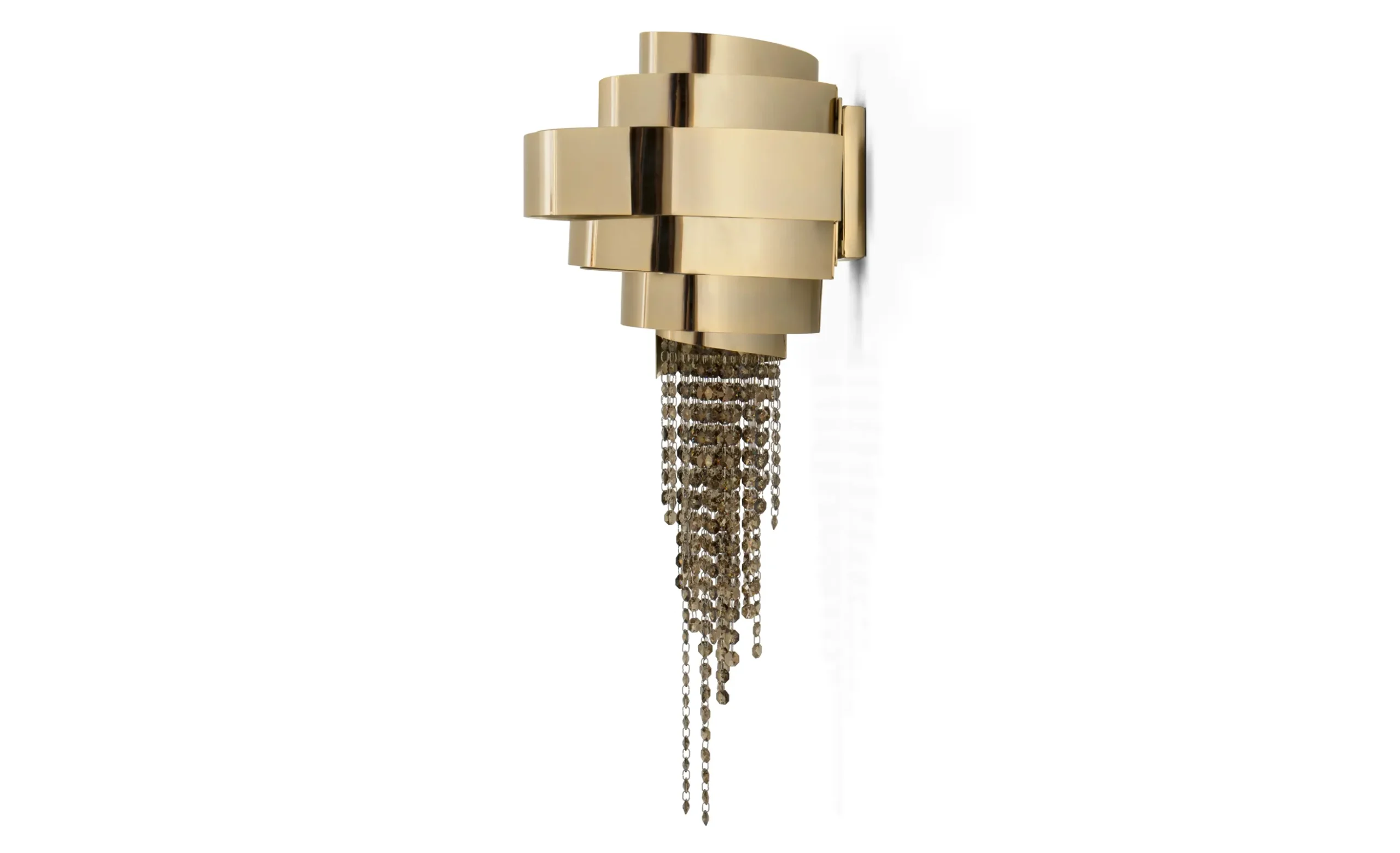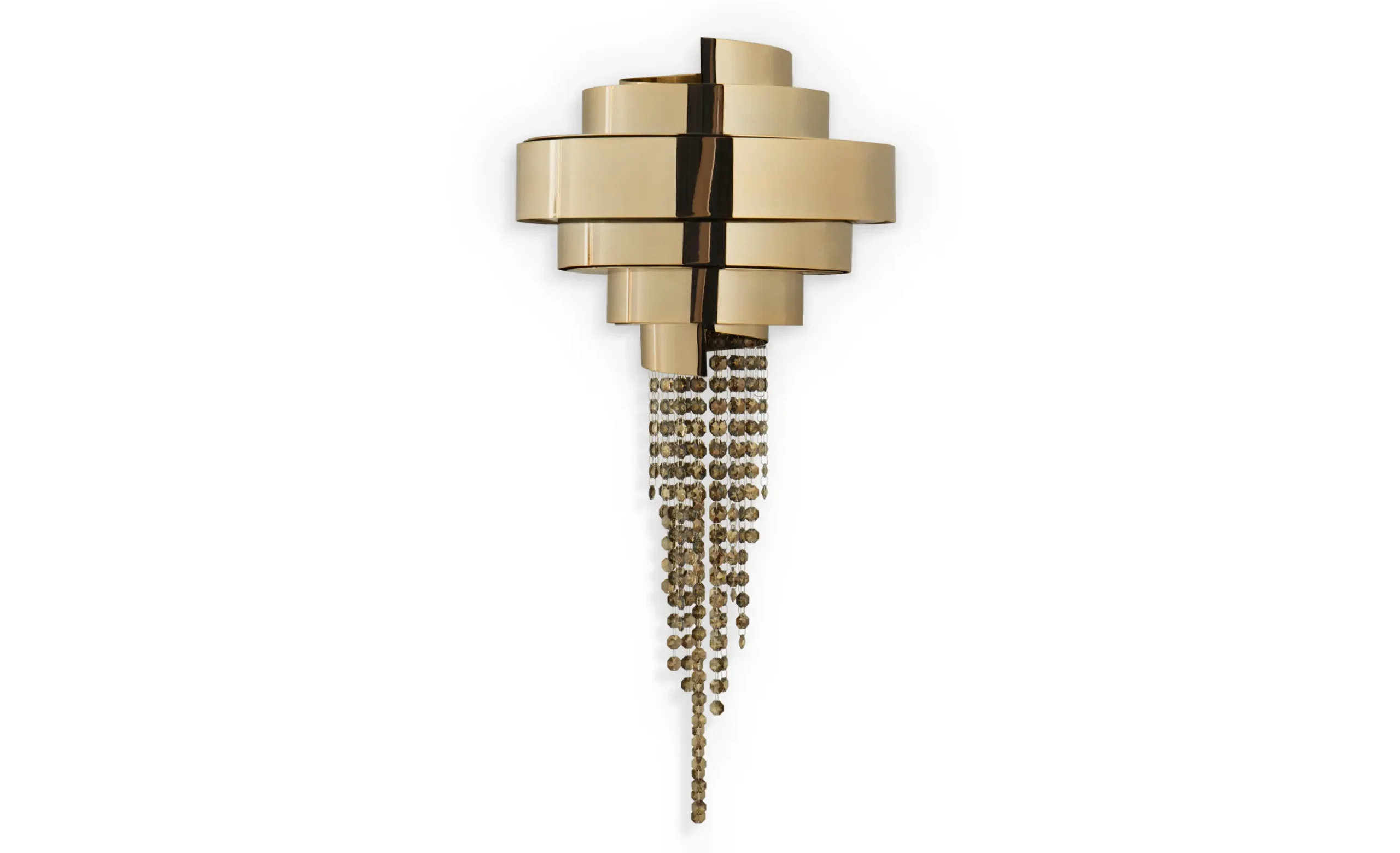 The Guggenheim Wall Lamp is a stunning addition to the family of awe-inspiring art. The design is a magnificent combination of gold-plated brass and crystals that promises to dazzle everyone in the room. This avant-garde creation will inspire your projects, forging the most exquisite and elegant ambiance. Add a touch of sophistication to your interior with this remarkable wall light.MATERIALS