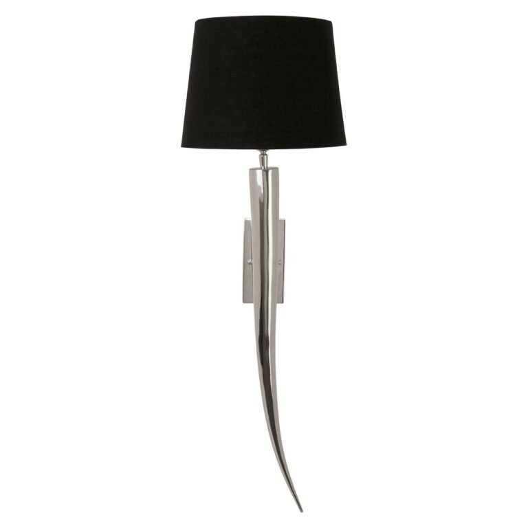 This Hartel Wall Light With Curved Base is created from stainless steel in high gloss nickel finish. It is contrasted by the black fabric shade atop. The silver and black tonal contrast make it suitable to style in a monochromatic themed interior.