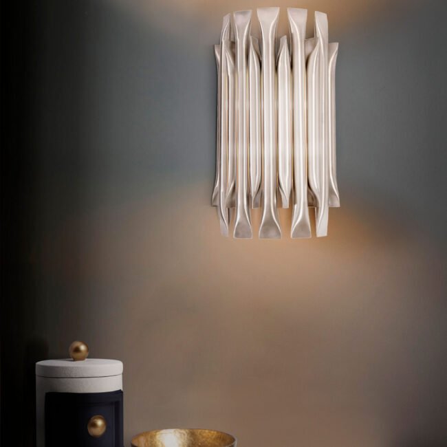 Matheny wall light has a complex and attractive geometry design of combined tubes. This unique lamp combines a mid-century modern design with a classic style that will make a statement in your home. Providing a subtle glow, this modern wall light is 100% handmade in brass and has a brushed nickel finish. With 4 lamps, we recommend you to use G9 bulbs. Ideal for your industrial kitchen or to use as a bedside reading lamp, Matheny wall light will add a smooth lighting effect to every single room of your interior design.