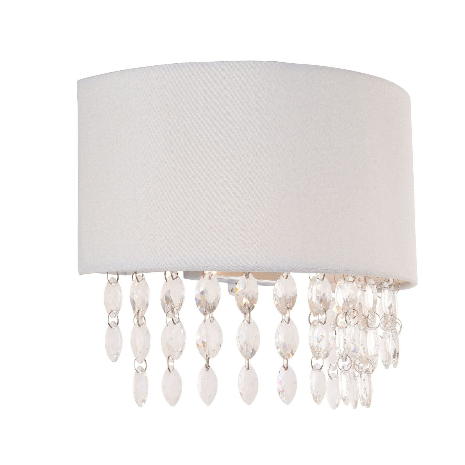 Stunning multi layer wall light with silver grey fabric shade. Complete with double row of facetted glass crystals and dimmable to create a stylish ambience. Matching pendant also available.
