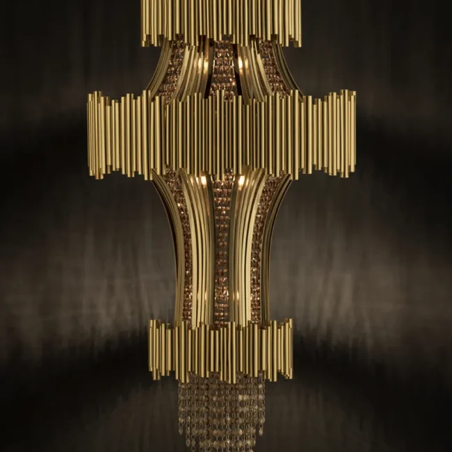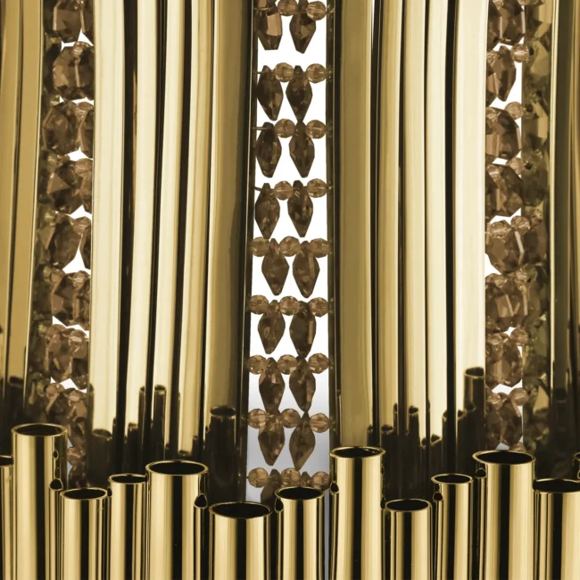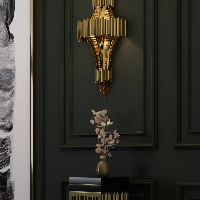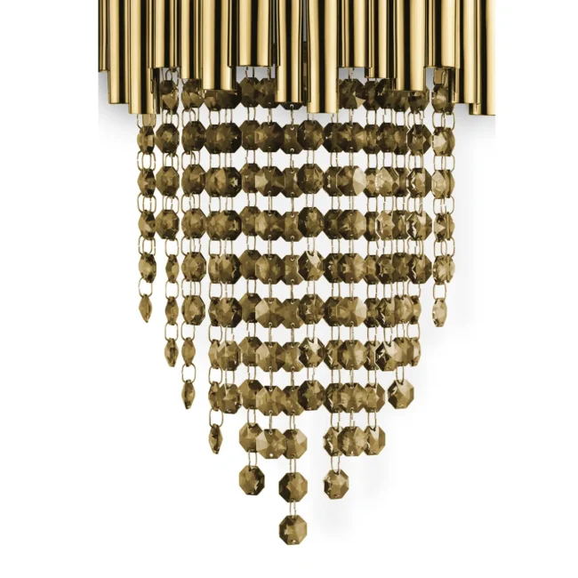 Elegant and luxurious wall lighting item, as incomparable and impressive as the romantic details of crystals. Poetically made in gold-plated brass with the handwork techniques of the craftsman, the Scala Wall Lamp will bring warm light to any dining or living room set, involving you in passionate emotions.MATERIALS