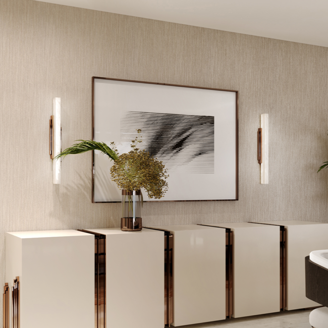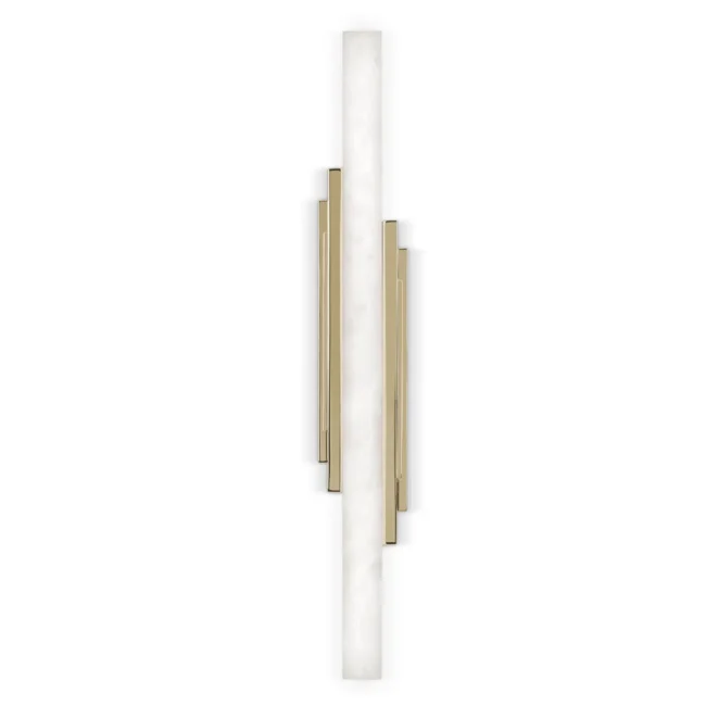 Drawing inspiration from the ever-busy metropolises around the world, the Skyline Wall Lamp represents the citys profile, the silhouette of stunning skyscrapers that can be seen at night. Made with gold-plated brass and alabaster, the simplicity of this wall light only adds to its aesthetic appeal, making it a perfect addition to any lighting design scheme featuring wall lamps.MATERIALS