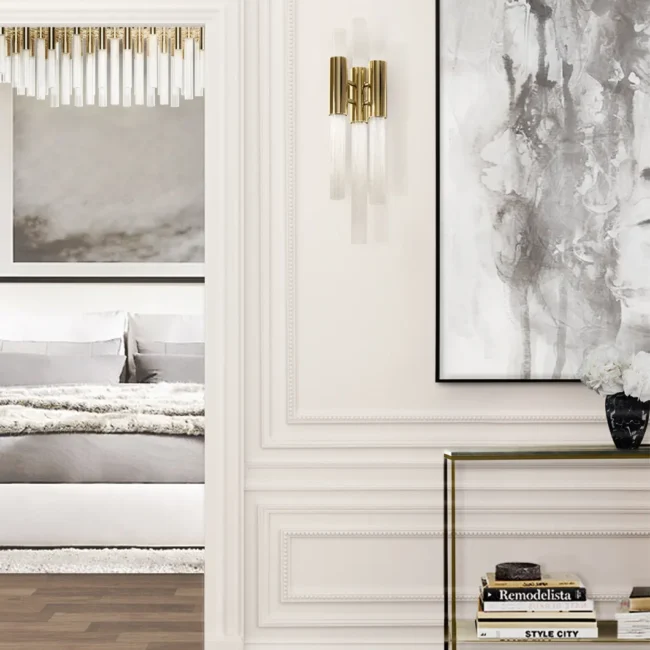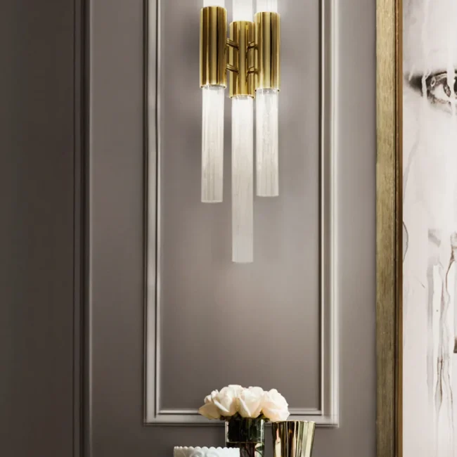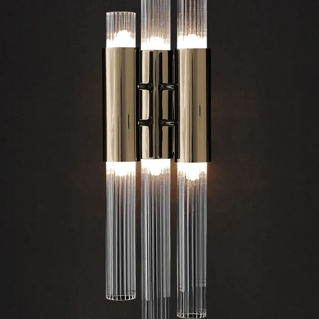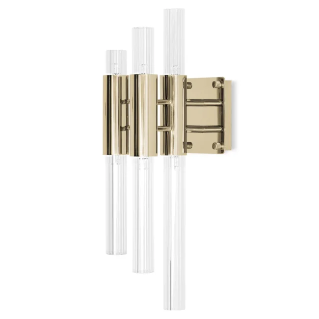 This best-selling luxury wall light infuses any interior decor with the natural sensation of waterfalls with its elegant and modern design. Made from gold-plated brass and adorned with crystal glass tubes, the Waterfall Wall Lamp adds a touch of sophistication to any wall it embellishes, whether for a commercial project or a residential one.MATERIALS
