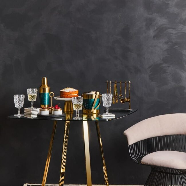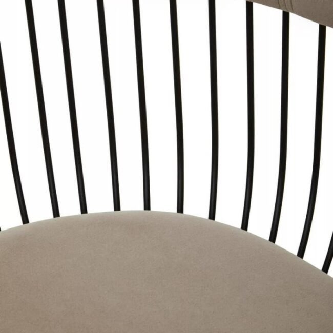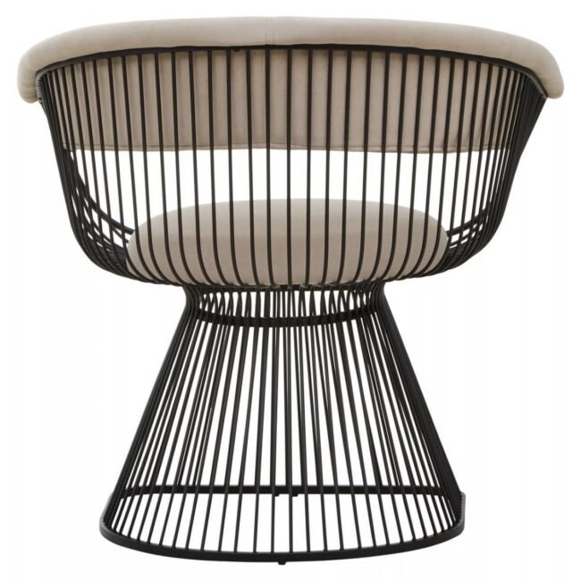 This dining chair is a blend of contemporary and art deco styles. It has plush mink velvet upholstery and a curved back. The seat is supported by a slim stainless steel frame with a bold black accent that sets off the pale hue of pink beautifully.