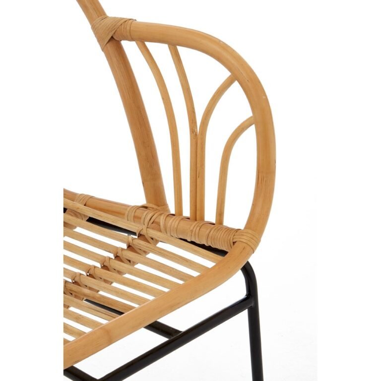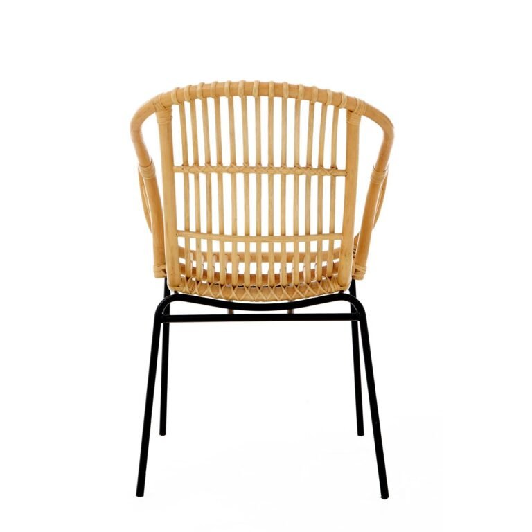 Its black iron legs angle outwards at the rear to complement the Albury Natural Rattan Chair With Raised Sides’s gently reclined design. This eco-friendly accent chair has a thick tubular outer section which supports vertical lines of rattan, each one tightly trussed to the frame by matching rattan strips. Use it to add an organic focal point to Nordic design themes.
