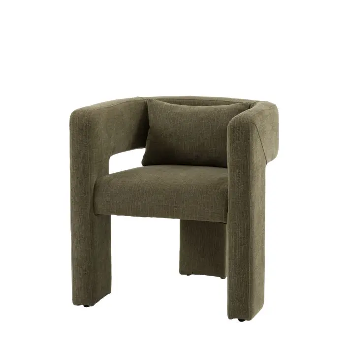 This eye-catching occasional chair adds a stunning, bold design touch to a room. It is fully upholstered in a lovely neutral fabric, with a bolster cushion for added comfort.