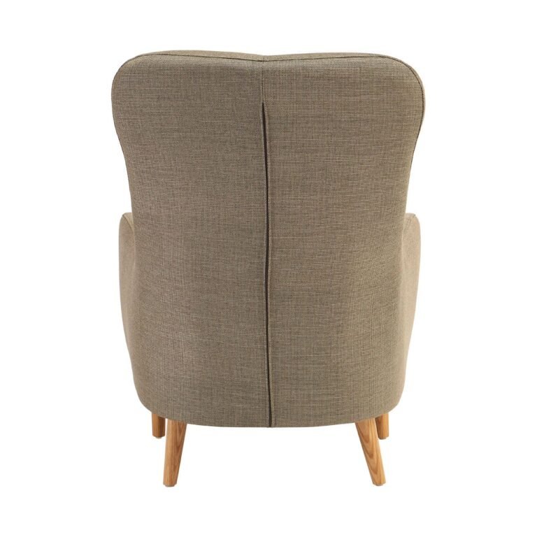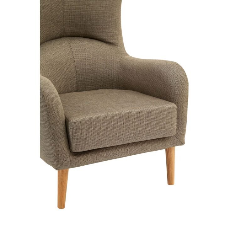 This Alnwick Mink Fabric Chair is upholstered in mink fabric, ideal for styling with pastel toned furnishings and textiles. Its backrest tapers inwards as it descends towards the armrests, both of which flow outwards and upwards. Delicate stitching adds texture, becoming more prominent on the backrest where it creates a pinched effect. Legs formed from natural ash wood provide support. *The colour of the product may differ from the packaging*