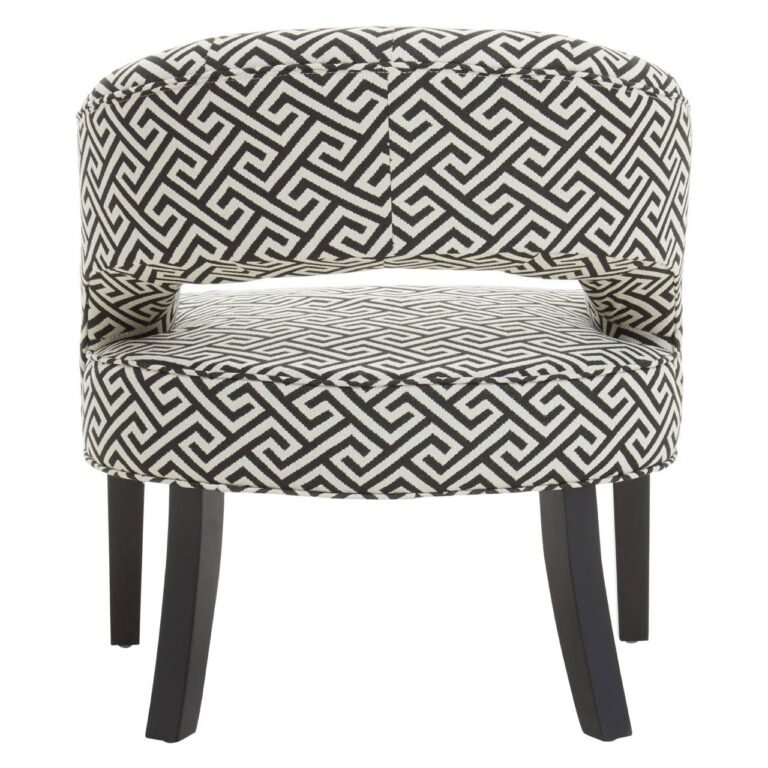 The Argen Park Cut Out Chair in black and beige Jacquard upholstery creates a classic look with an elegant wraparound back and cutout detail.