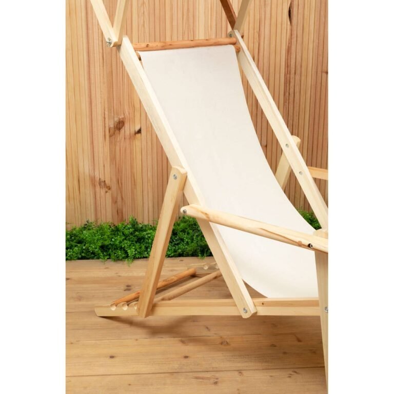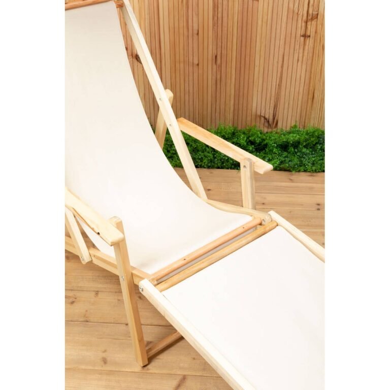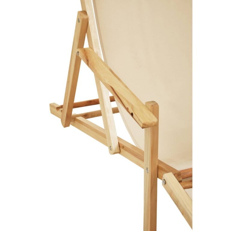This lounger is suitable for outdoor use, thanks to the sturdy cream coloured fabric. This lounger is weather-resistant and easy to clean. The backrest can be adjusted for a comfortable position. Made from solid wood in natural finish, it combines style and functionality.