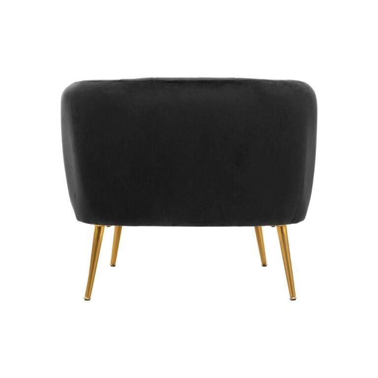 Bexhill Black Velvet Chair: This foam-padded chair boasts an angular profile that is upholstered skilfully in black velvet. Boasting channel tufting on the back, the U-shaped armrests offer a cosy seating experience, while the slender metal legs in the gold finish create a luxe accent.