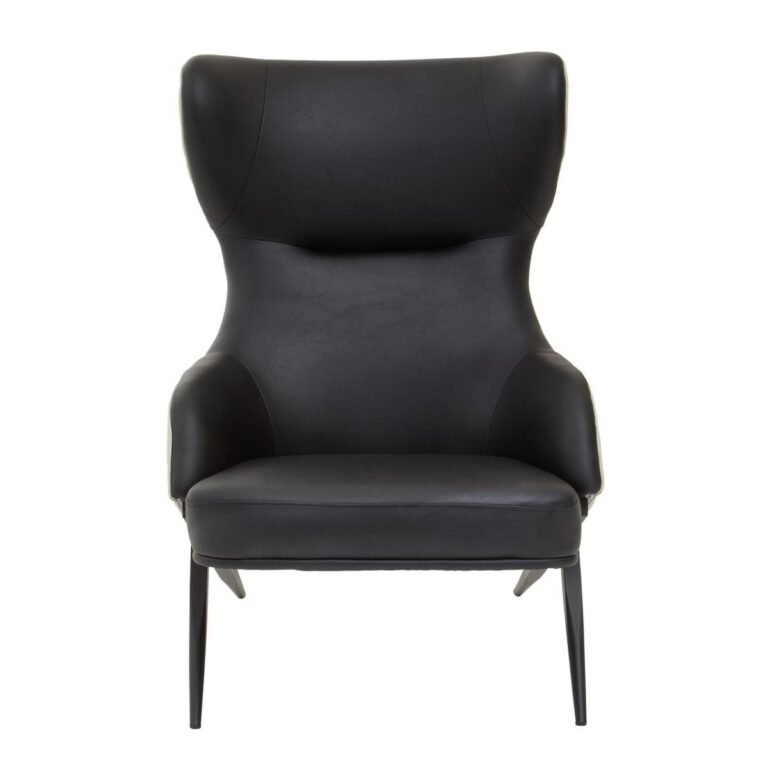 Evri Black Arm Chair: The Evri wingback chair features a curved backseat and armrests with a padded seat. The black seat of this armchair is supported by tapered legs made from sturdy metal in black finish.
