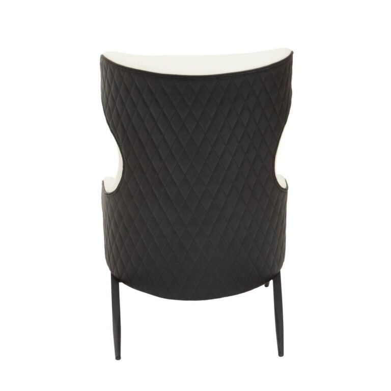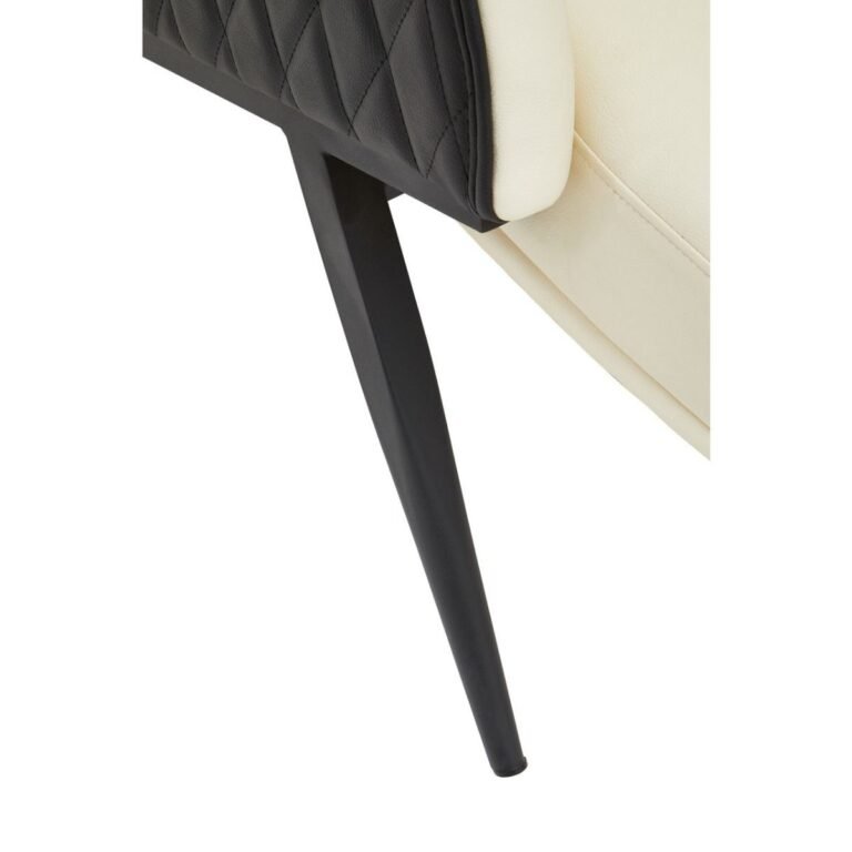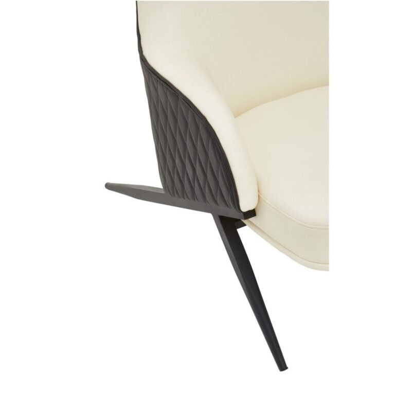 Evri Ivory Arm Chair: The Evri wingback chair features a curved backseat and armrests with a padded seat. The ivory coloured seat of this armchair is supported by tapered legs made from sturdy metal in black finish.