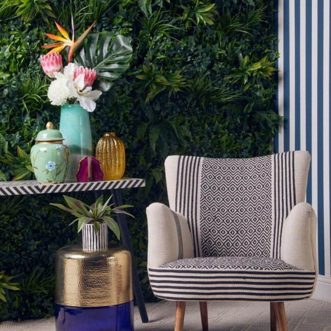 Skillfully handcrafted from black and white cotton, this armchair will add an artful aesthetic to a variety of abodes the woven pattern in monochrome hues. The flared arms with a high back are filled with dense foam padding, complete with eco friendly rubber wood legs for stability.