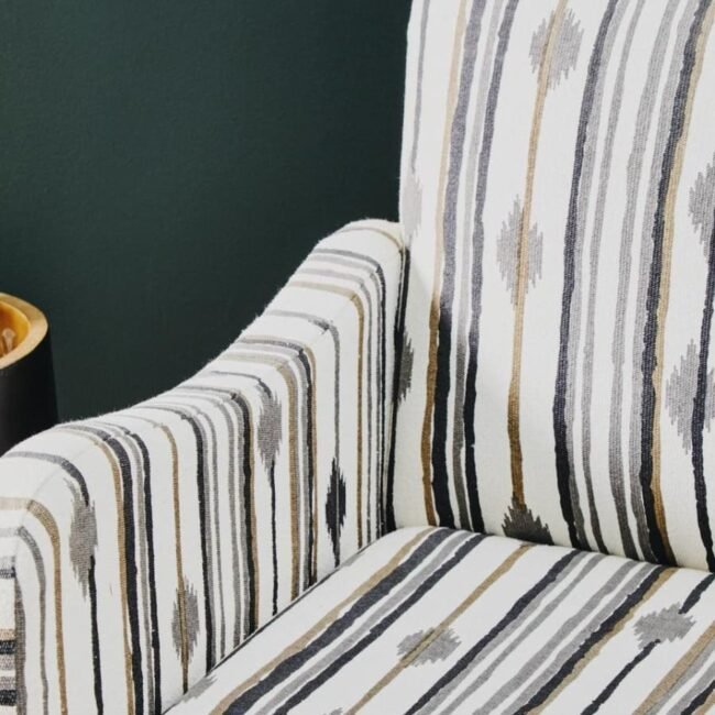 With two tonal cotton upholstery in monochrome accent, this Fena Armchair With Straight Arms with deep seat comfort and relaxed recline will provide extra seating for the living room or bedroom.