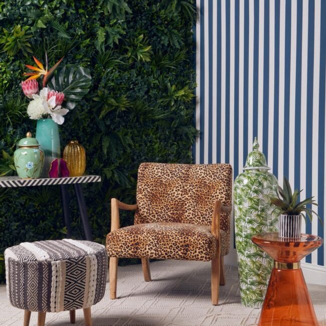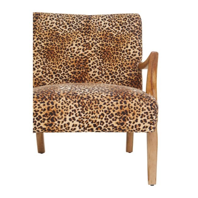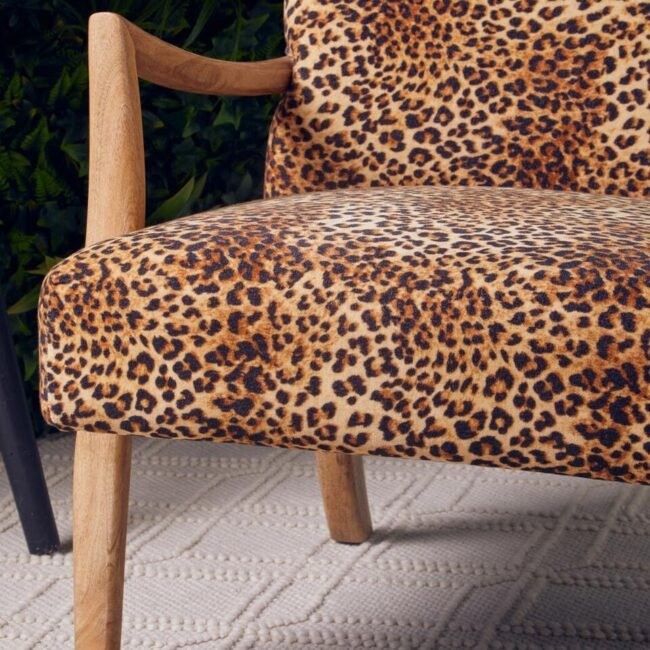 Create a contemporary statement with the Fena velvet leopard print and mango wood armchair.