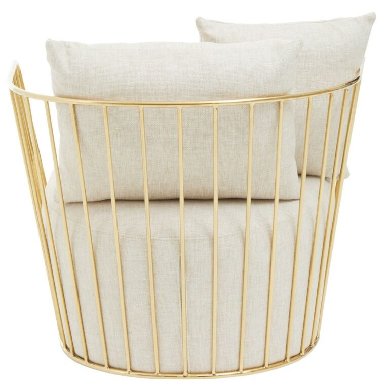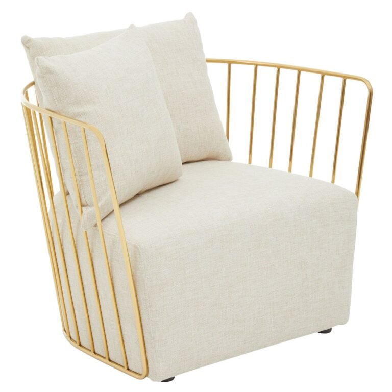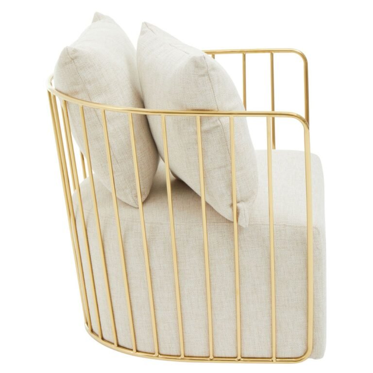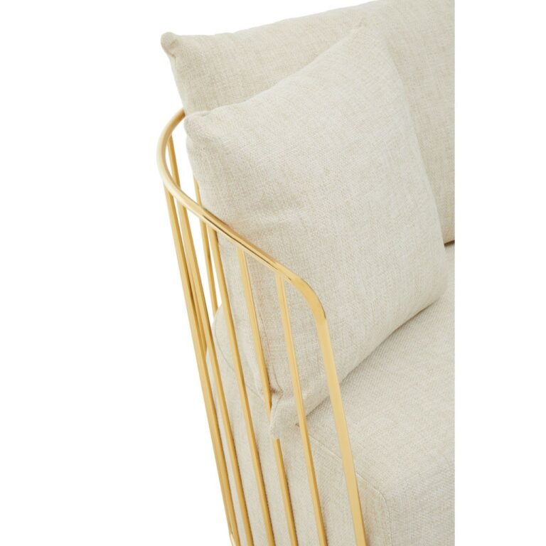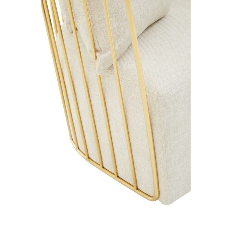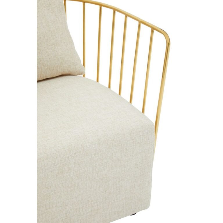 This Hamil Natural Fabric Chair lends an art deco allure to the area with the combination of natural fabric and gold effect metal frame. A series of stainless steel bars create an angular profile, and the foam-padded seat with two pillows offers a cozy seating experience.