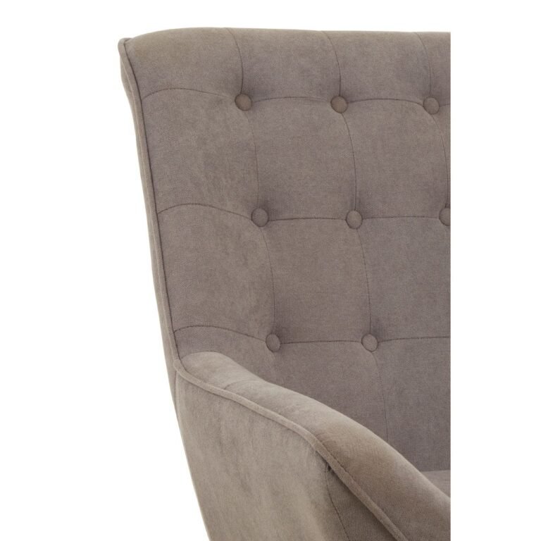 The Holm Grey Curved Chair is upholstered in tactile grey faux linen and has a unique curved seat and angled backrest with button tuft detailing and grid pattern, that combine to create modern appeal. The chair’s clean-lined padded seat and back are adorned with piped hem detailing to enhance the visual aesthetic. Renewable rubberwood legs are finished in black to counterpoint the light grey upholstery.