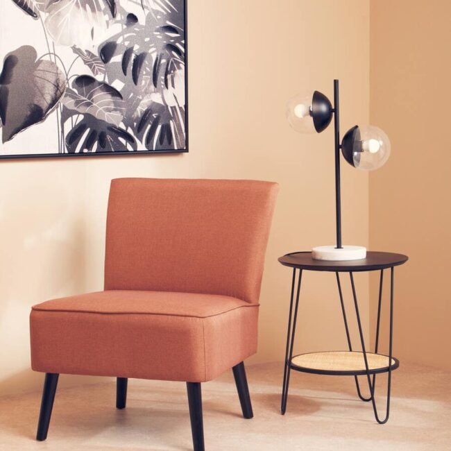 Holm Terracotta Fabric Chair with black rubberwood legs