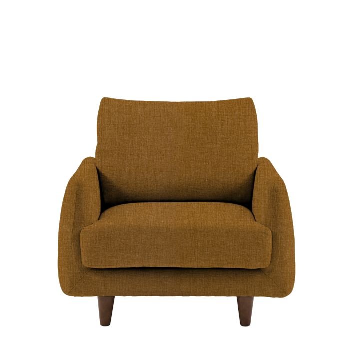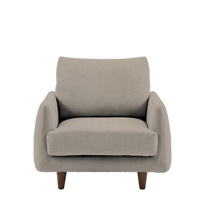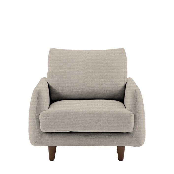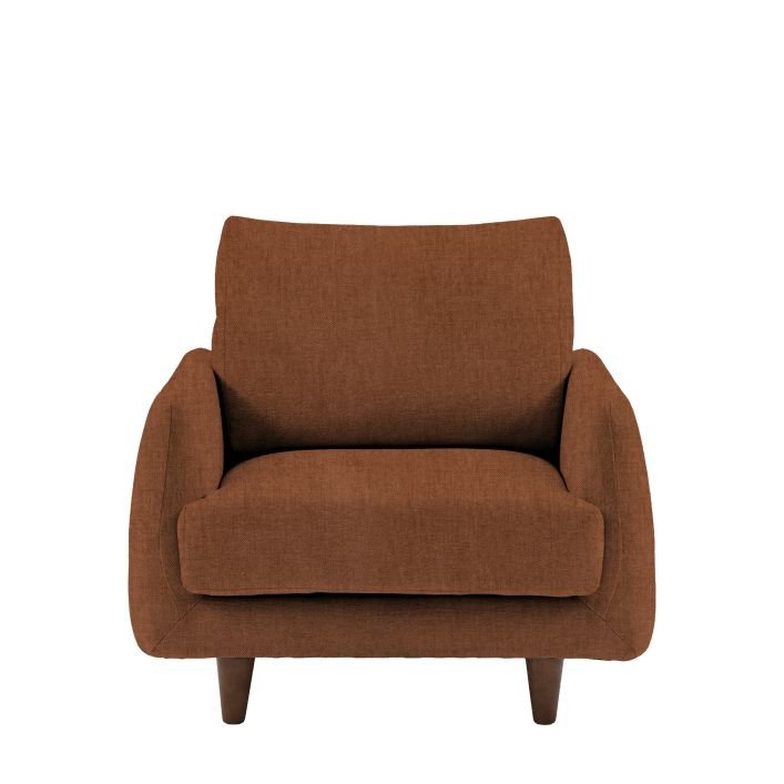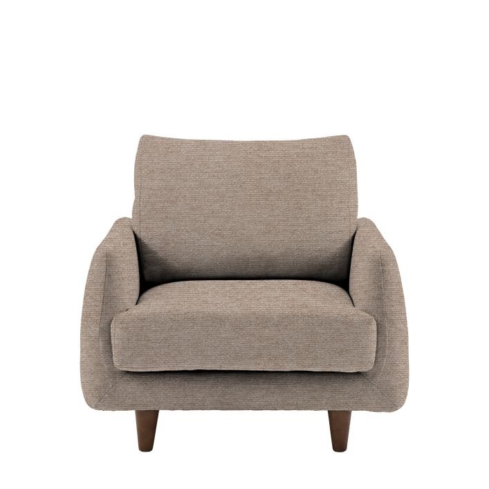 Kao Armchair: Effortless style, refined comfort. This modern armchair pairs a clean, structured silhouette with gently rounded arms for a softer, more inviting profile. Supportive side bolster cushions add a tailored touch, while plush foam and polyester-fibre fillings provide exceptional everyday comfort. A contemporary design that perfectly balances style and relaxation, bringing modern elegance to any interior.