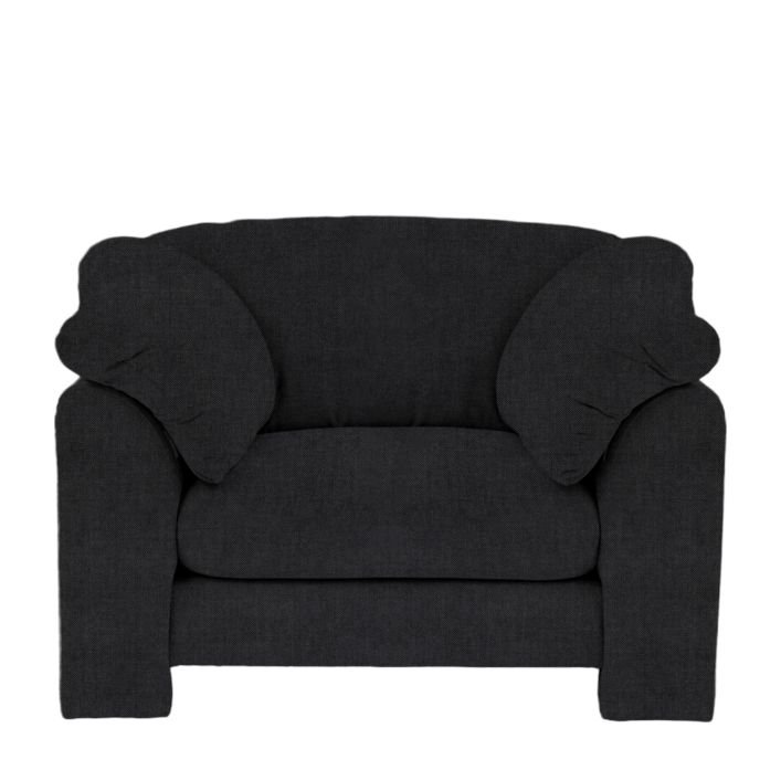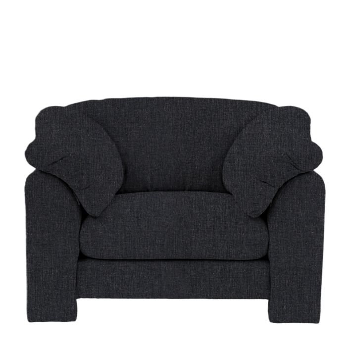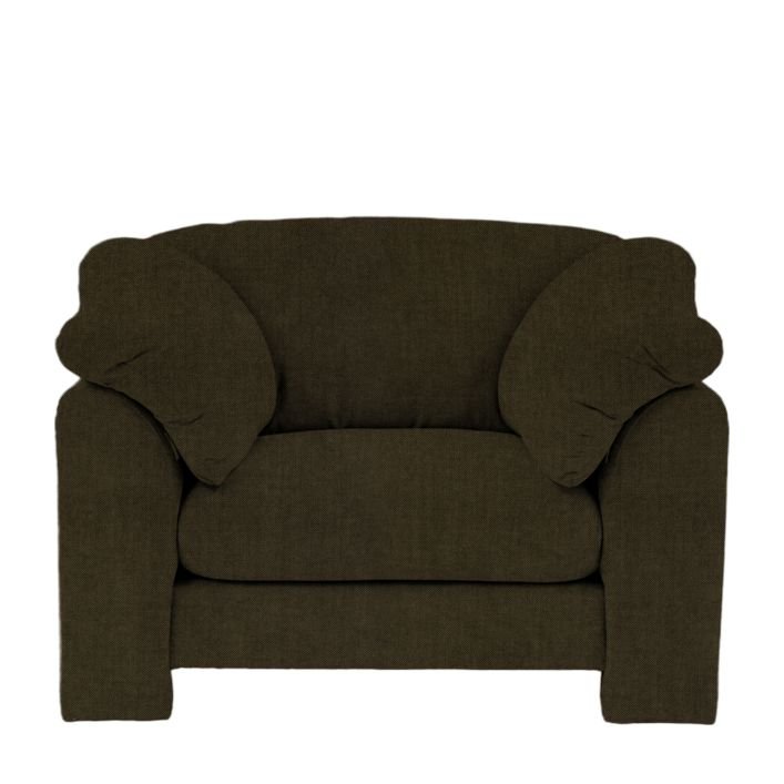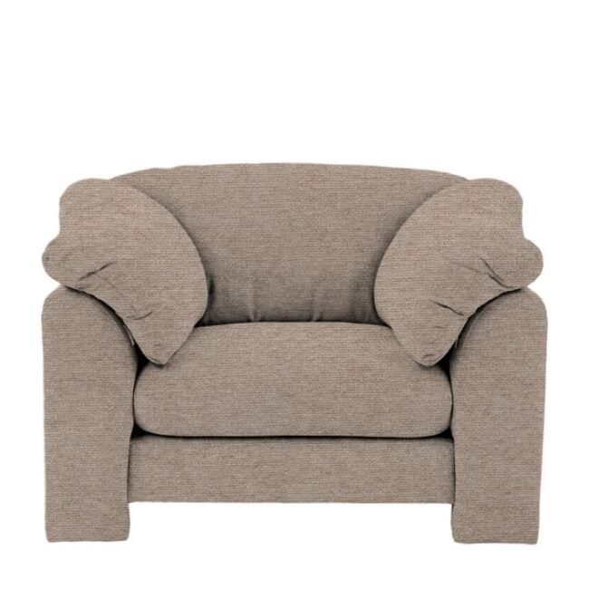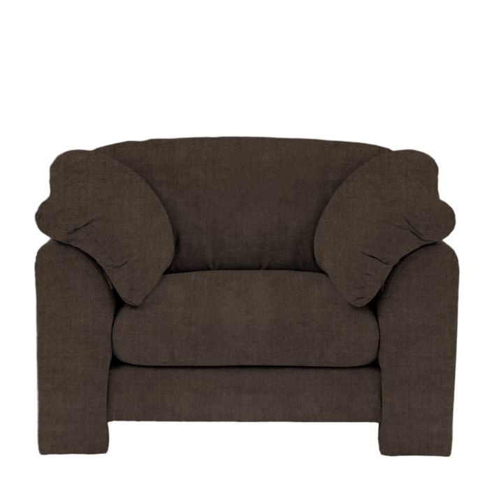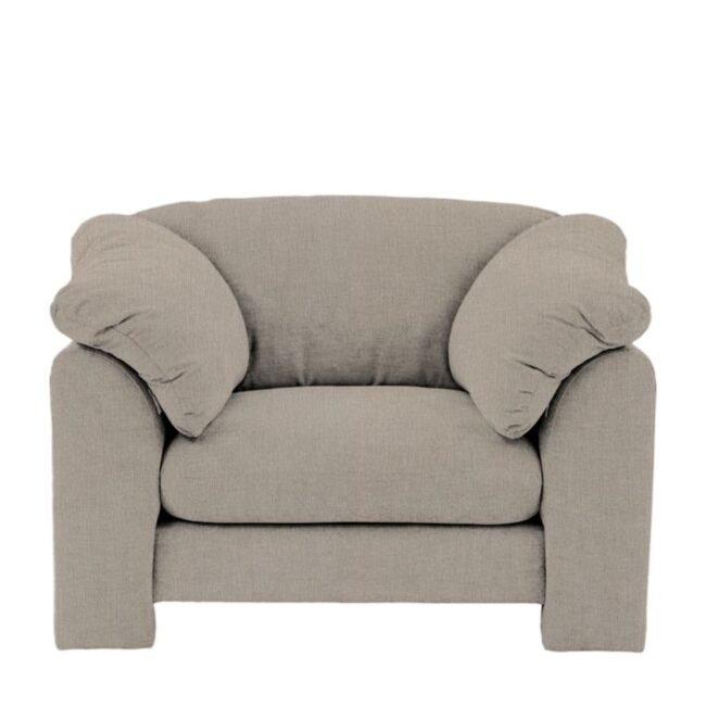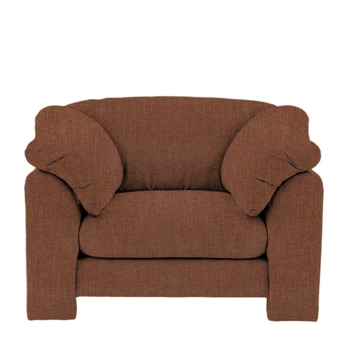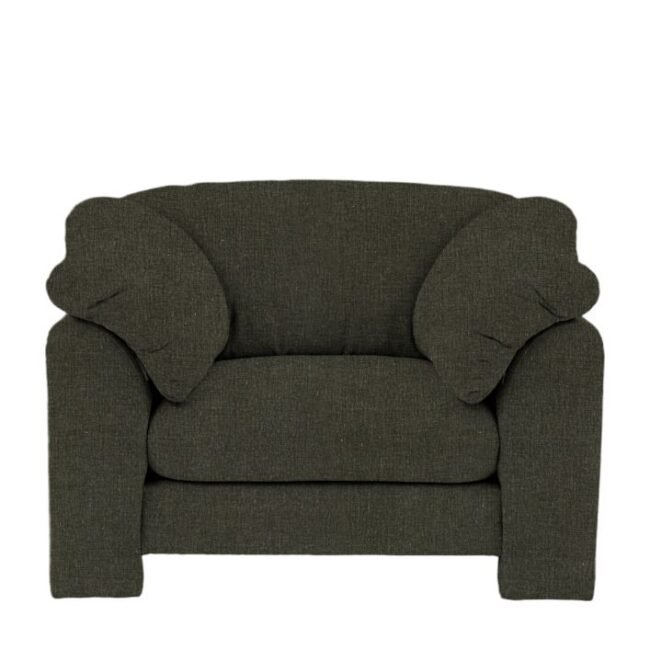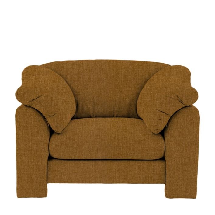 Kuded Armchair: Relaxed style meets modern comfort. This inviting armchair combines plush foam and polyester-fibre fillings for a soft yet supportive sit, while wrap-over arm cushions introduce an extra layer of indulgence. Upholstered legs create a seamless, contemporary profile that enhances its effortless, laid-back aesthetic. The perfect balance of style and comfort for everyday living.