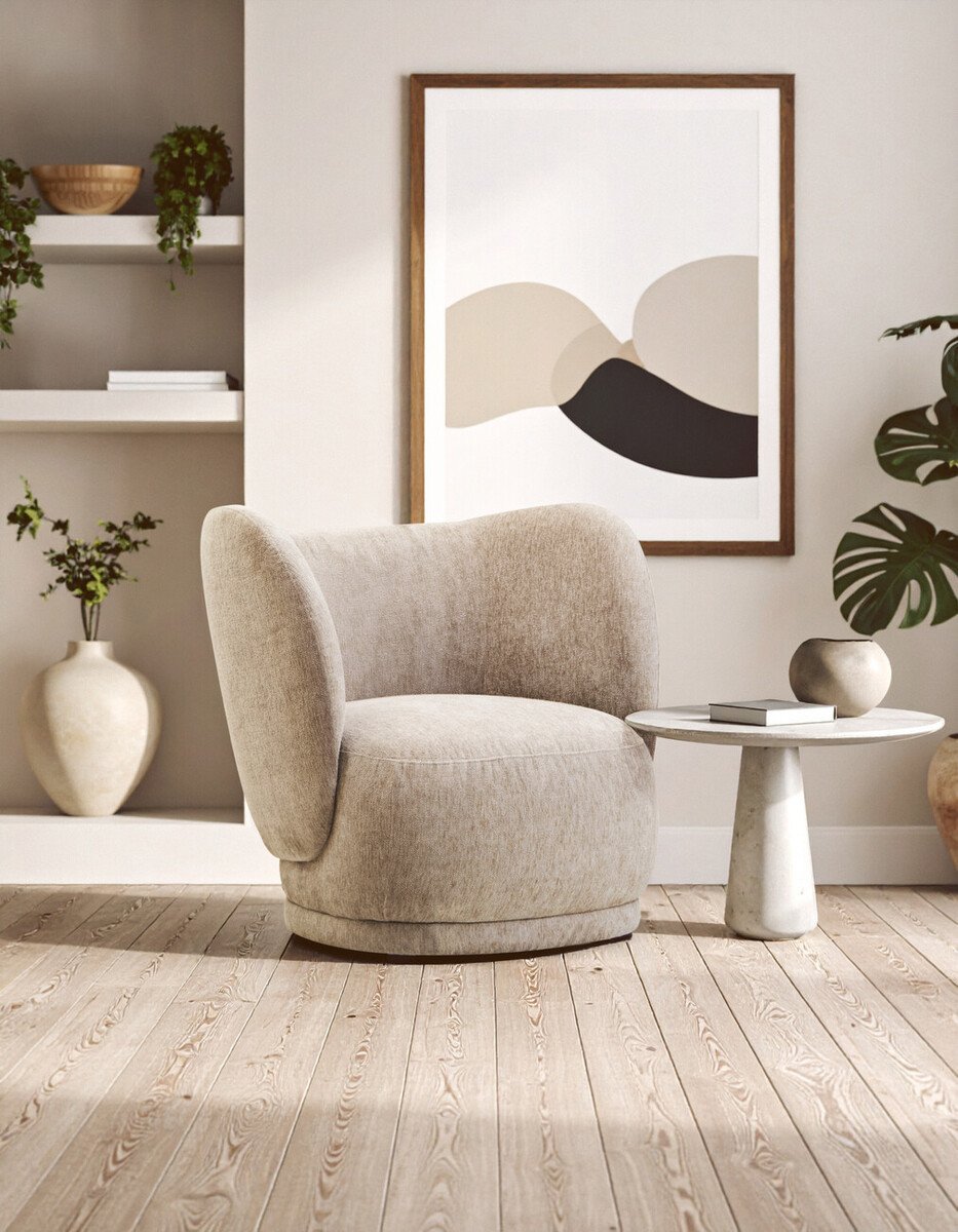 Elevate your living space with this sophisticated curved chair, a modern statement piece that blends comfort with style. Upholstered in soft, textured chenille fabric in a deep stone colour, this chair offers a cosy and luxurious seating experience. Its contemporary curved design provides both practicality and elegance, this chair is ideal for adding a chic and inviting touch to a variety of interiors.