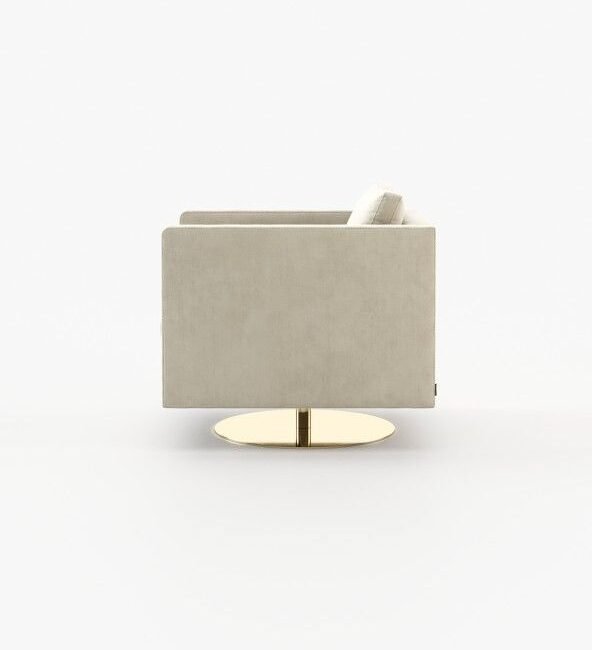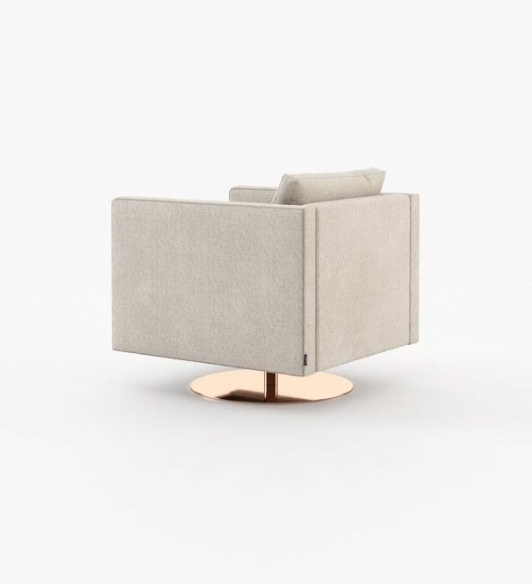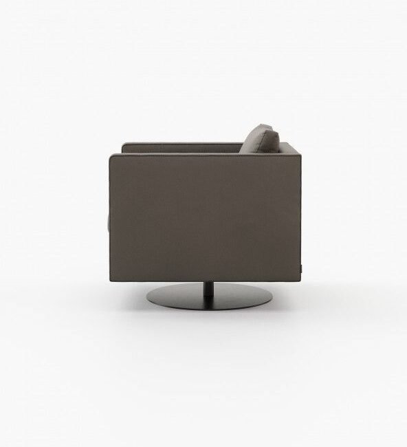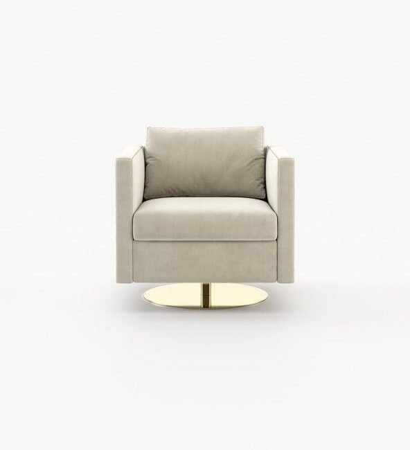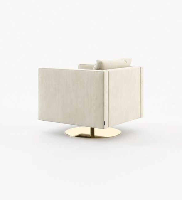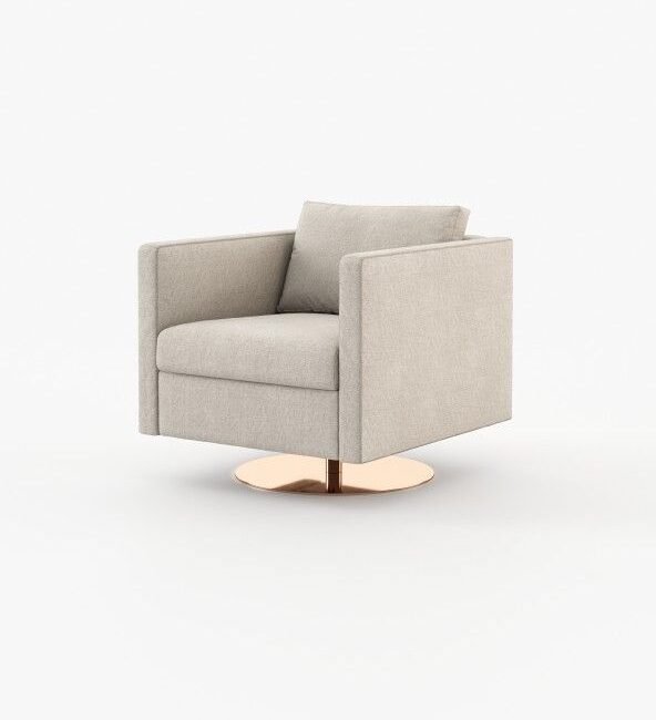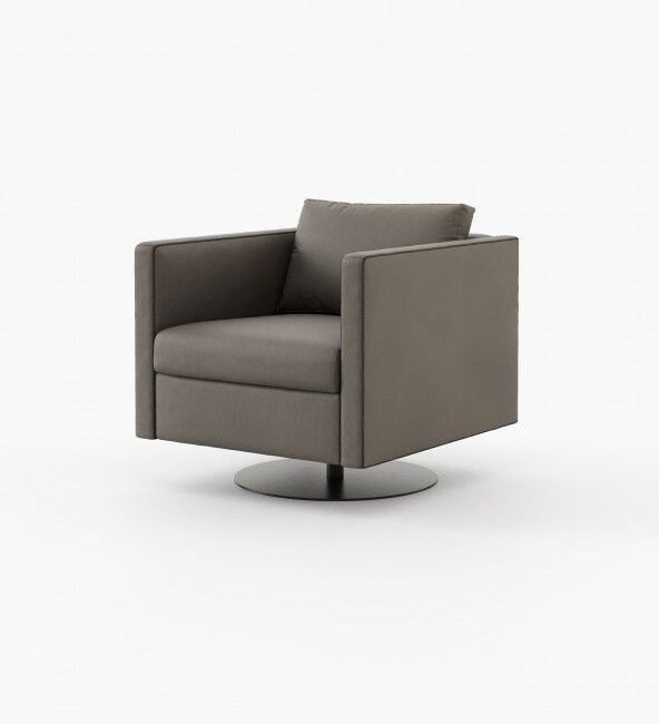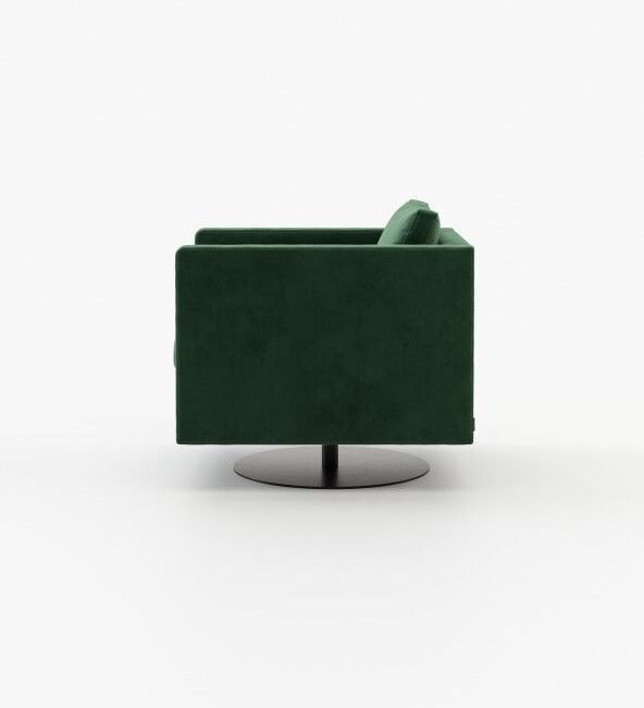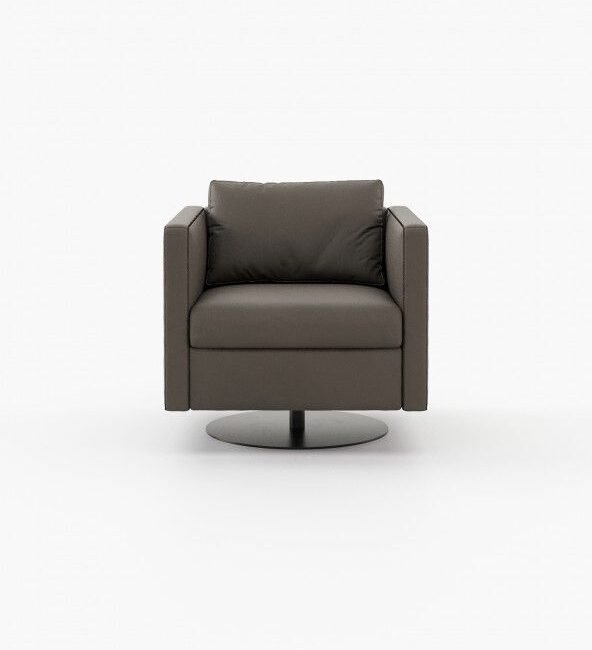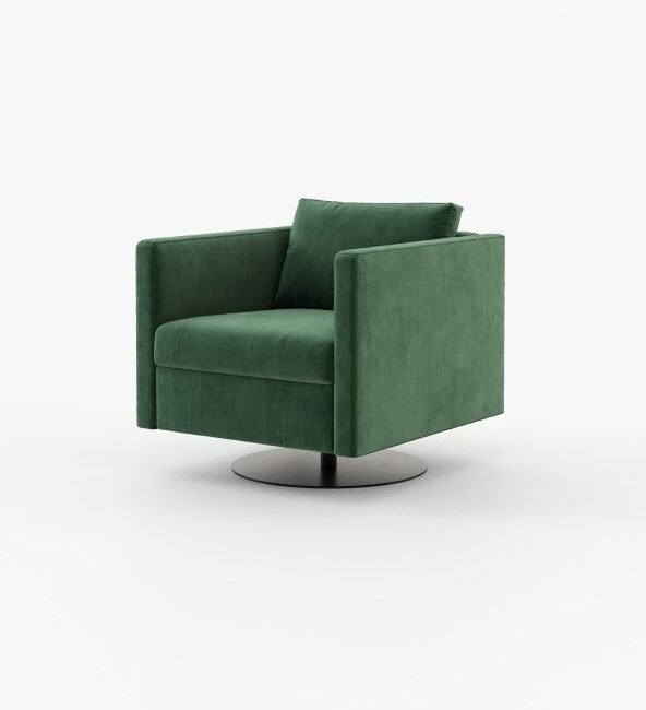 Marlow is an inviting armchair that appears to float above a slim metal base. It adds elegance to any room and is great for spinning around in.