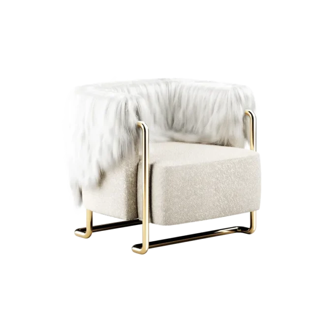 Max Armchair is a modern mid-century style armchair. This modern armchair brings details from the old days to contemporary design. The armchair design shape and exquisite materials like the fur detail make it a great accent armchair.