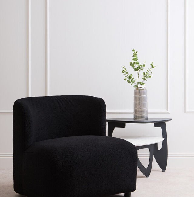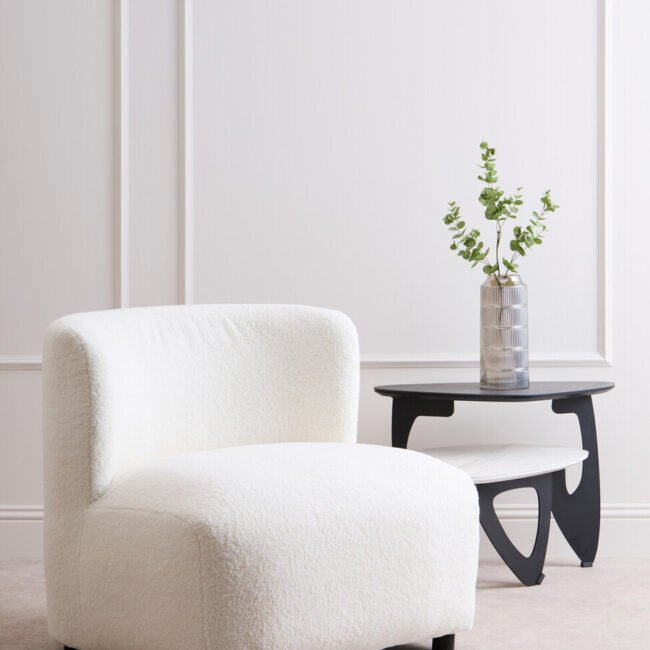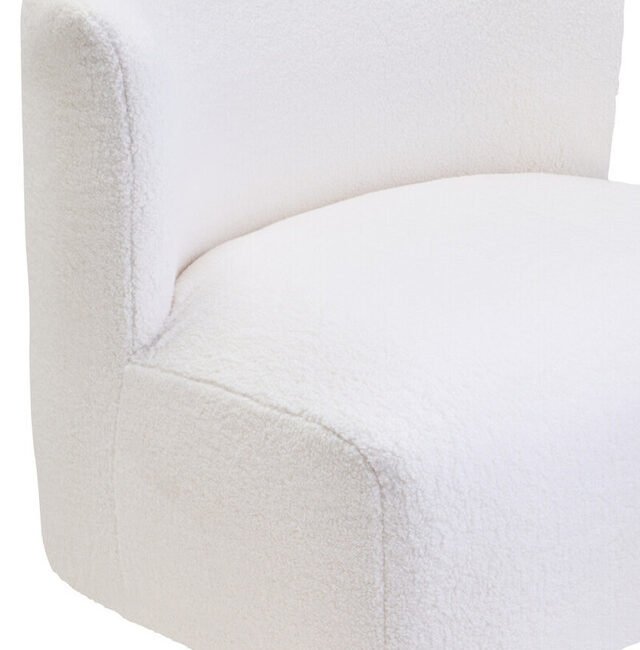 Montea Boucle Effect Armless Lounge Chair: Upholstered in soft boucle effect fabric, the chair’s curvaceous form offers warmth and tactile appeal. Generous cushioning and an embracing backrest ensure exceptional comfort, while the armless design enhances its versatility, perfect for adding understated elegance to any living space.