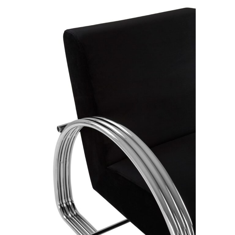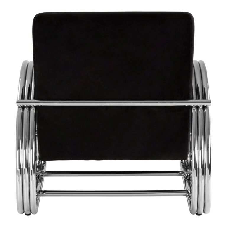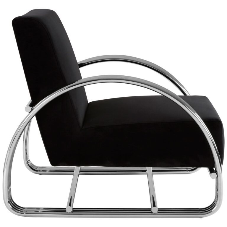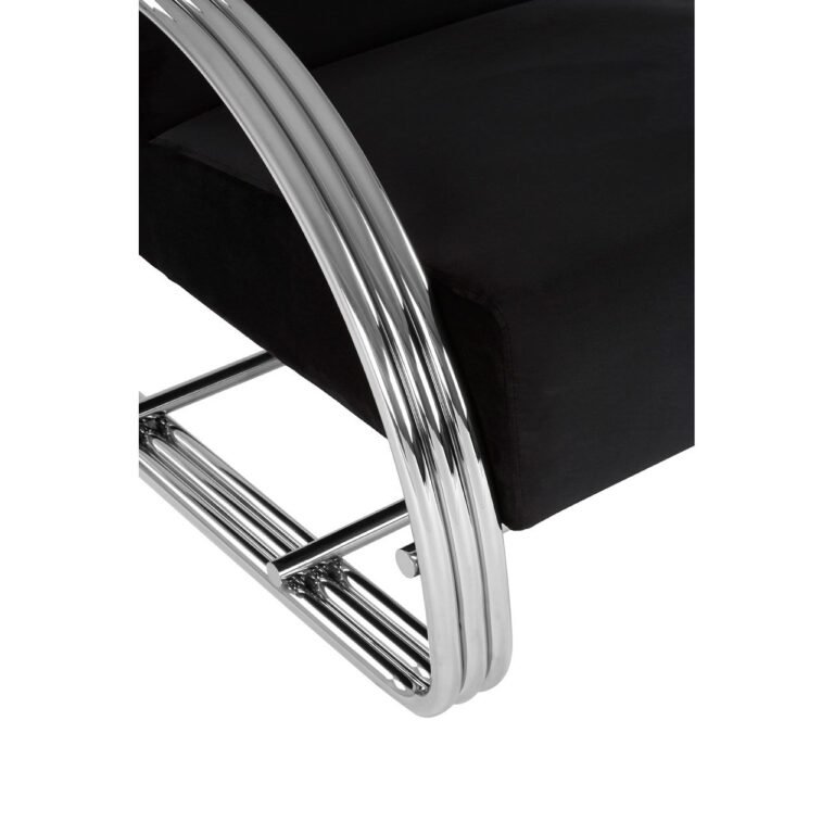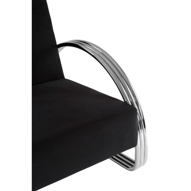 Piet Leisure Chair: This luxurious chair has a low seat with thickpadded cushions and backrest. Made from soft fabric, it has a black finish that counterpoints the silver finish stainless steel arms.