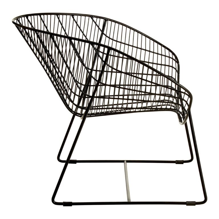 Porib Iron Chair: The seating area has a generous design, with a low profile and rounded backrest for optimum comfort. The legs are minimal, in keeping with the overall aesthetic. It’s made from strong iron and has a cool black finish. The openwork, lattice construction ensures that it doesn’t dominate. Dress it with a metallic textile throw or cushion.